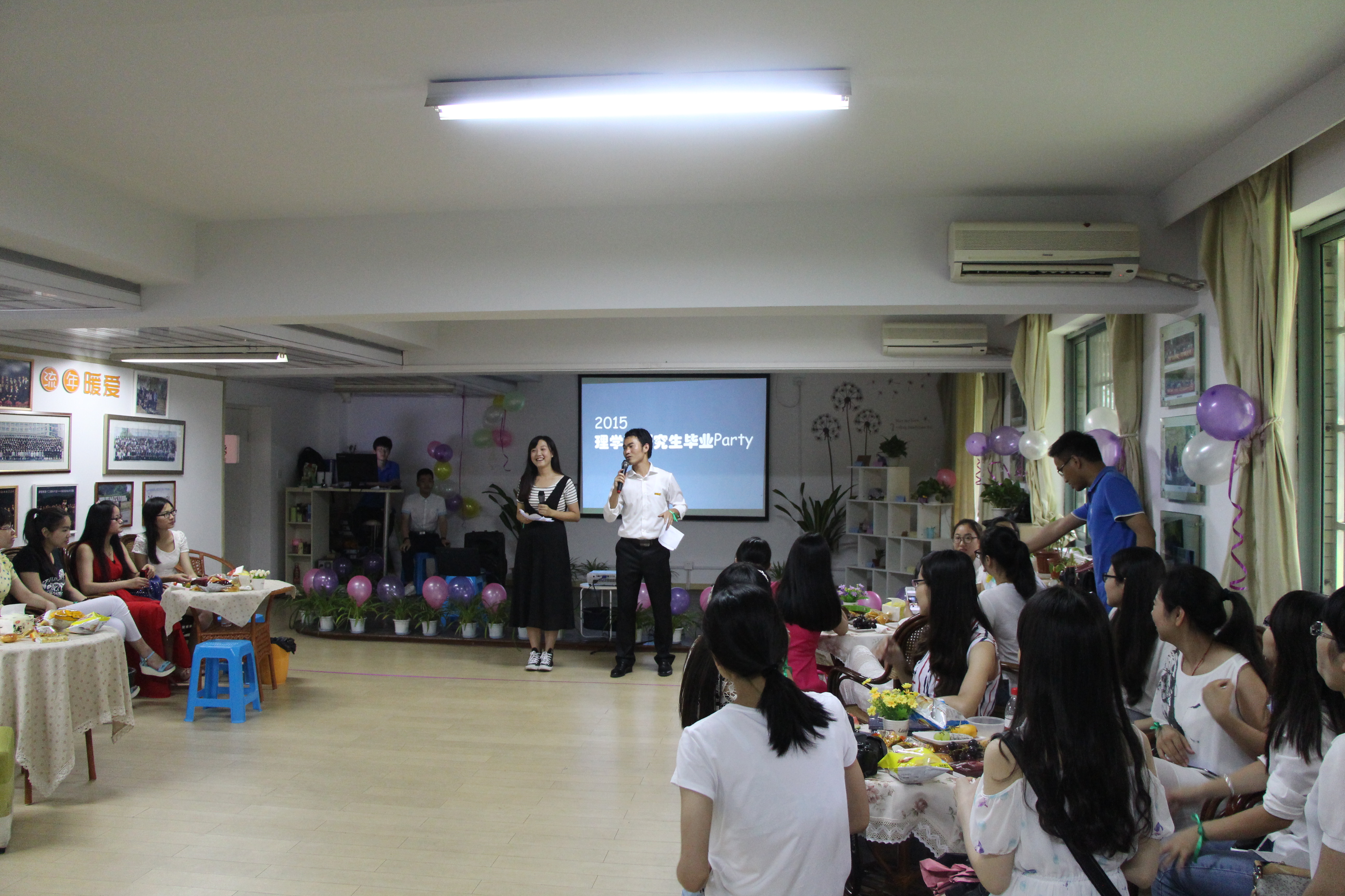 在2015届毕业研究生即将毕业离校之际,理学院于6月17日在理学家园举办了属于他们的毕业Party,作为送给他们的一份礼物。现场布置的很漂亮,外面设有红地毯,台桌上摆放了自助果盘,毕业生们热情参与,现场氛围温馨而美好。