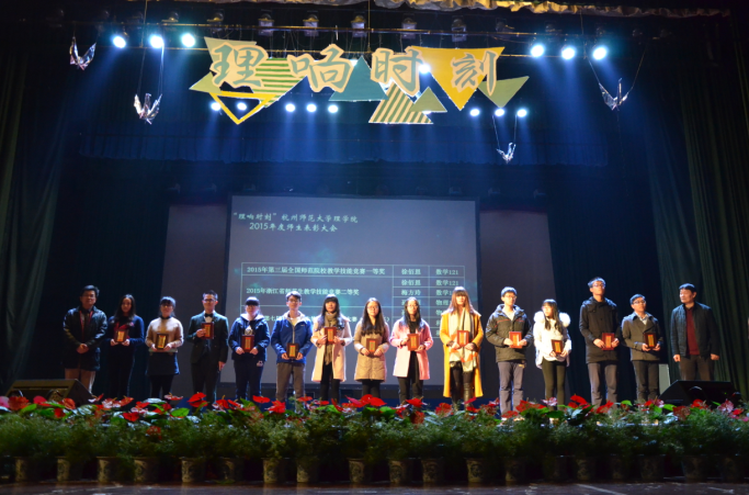颁奖环节中,首先对在文体竞赛、社会工作、创新创业、学习竞赛方面取得优异成绩的同学进行了表彰。在“出彩理学人”的表彰环节中,八位个人奖、两支团队奖依次上台接受表彰,学习标兵奖获得者李越同学向大家分享了自己的学习经验;自强励志奖获得者程伟涛同学则向在场的师生讲述了他克服困难,不断成长的心路历程;陆凡同学则分享了自己在科研道路上的故事。教师颁奖环节中,同学们用鲜花表达对老师的敬意。教师代表张慧增老师分析了数学建模大赛的特点,并鼓励同学们积极参与其中。