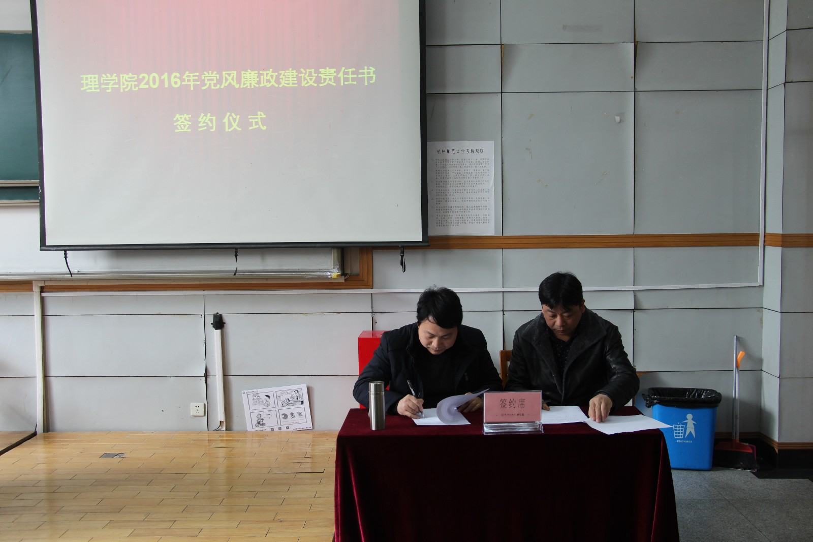 此外,会上,学院党政领导还分别与系党总支书记、系主任代表签订了学院2016党风廉政建设责任书和校园治安综合治理及创建“平安校园”目标管理考核责任书。