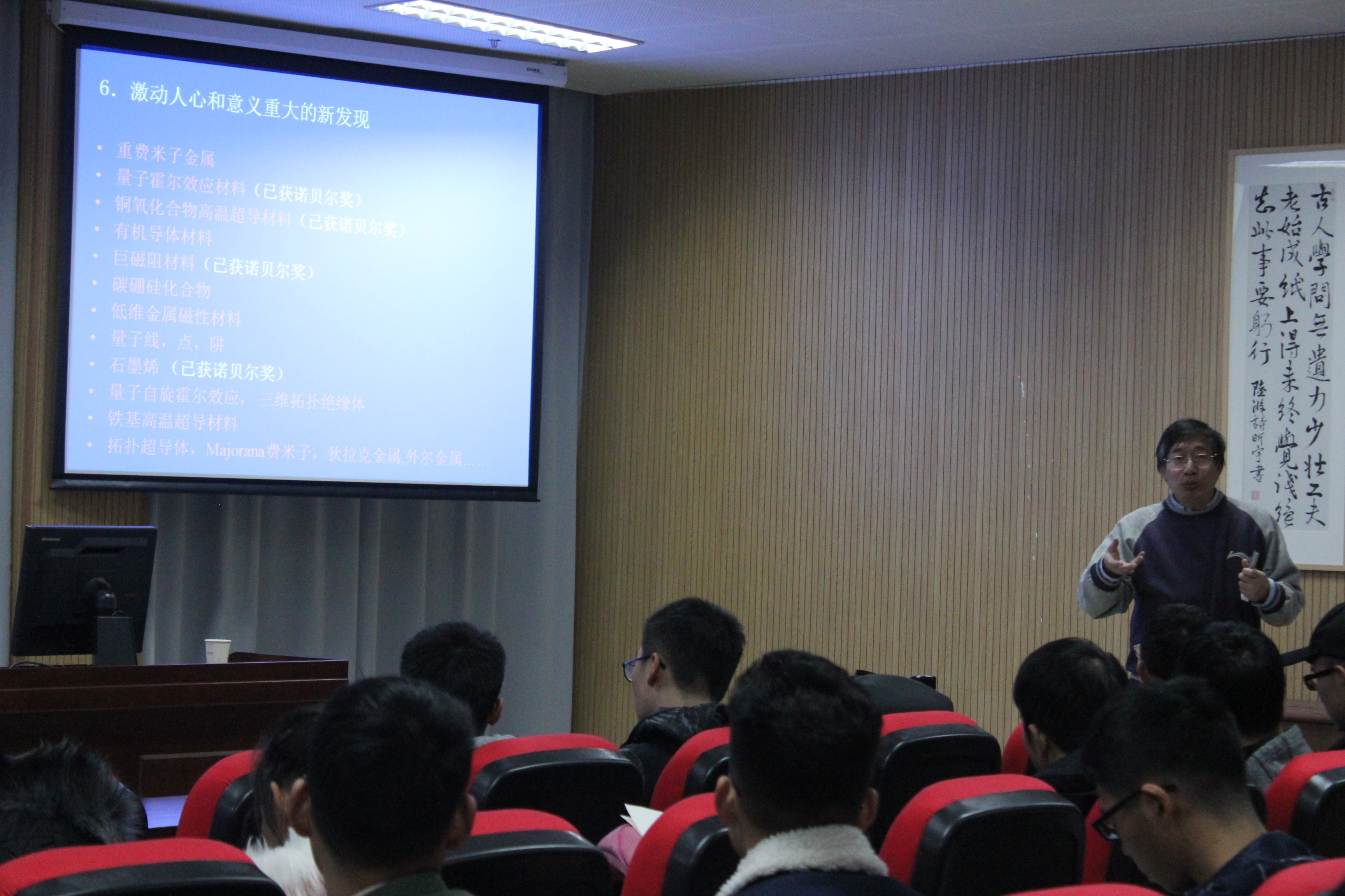 12月5日,理学院优秀教师戴建辉教授应邀为18级物理系学生举办物理专业知识讲座。
