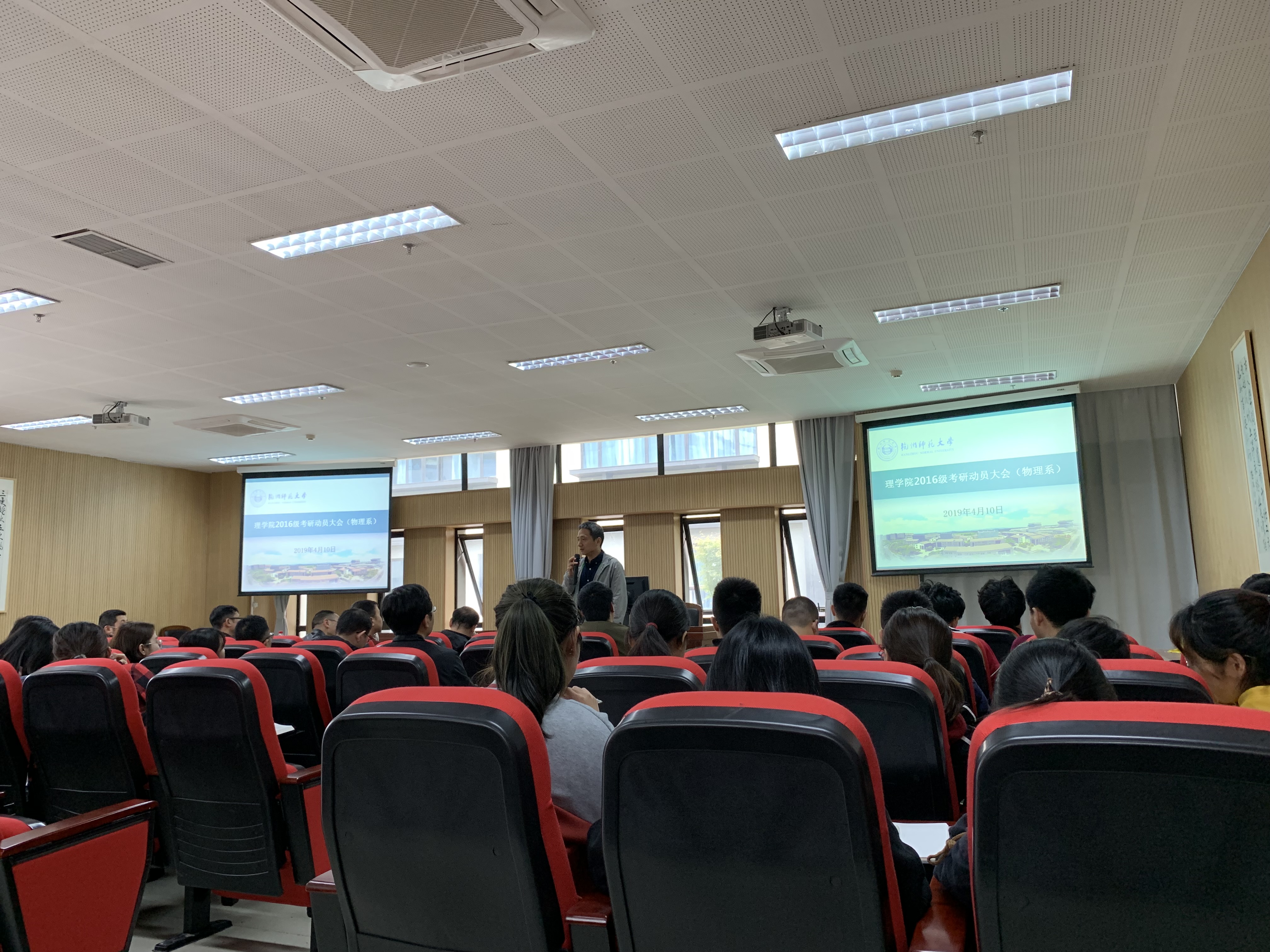 在这两场考研动员会上,理学院党委副书记应金飞结合近几年理学院学生的考研情况,对2020届学生的考研工作做出指导,代表学院给同学们加油鼓气。数学系主任徐衍聪、物理系主任侯红生为大家分析了近年来的就业形势和考研形势,鼓励同学们积极考研,竞争更高的学位。数学系副主任何济位、物理系副主任王杭栋就如意直播 硕士研究生的专业和方向进行了详细介绍,并指导同学们在考研专业及考研院校上作出合适的选择。考研动员会还邀请了多位嘉宾,如北师大硕士研究生毕业在浙大附中工作的张芳、2015级考上浙江工商大学硕士研究生的王鹏月、朱静。她们结合自己的考研经历,从自己的梦想到自己的计划、从自己的学习方法到复习资料的选择和时间的规划,为同学们做了非常细致的指导,引导同学们坚定考研信念,实现梦想。会上,还有多位老师对同学们做考研报考和专业选择指导,还有考研学生代表发言,表示以“信念、勤奋、执着”作为自己考研路上的鞭策,讲述了自己从就业到坚定考研的心态转变历程,激励同学们为考研梦想努力奋斗。