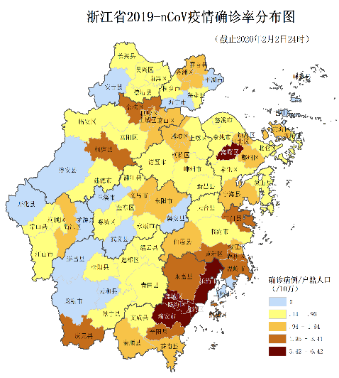 2020年1月23日,浙江省率先启动重大公共突发卫生事件一级响应。为实现科学监测政策实施一周后浙江省新型冠状病毒肺炎确诊情况,遥感地学系教师刘婷带领本专业学生团队与浙江省教育现代化研究与评价中心团队一起制作了浙江省新2019-nCoV疫情确诊率分布图,并在浙江教育现代化公众号上进行了发布。