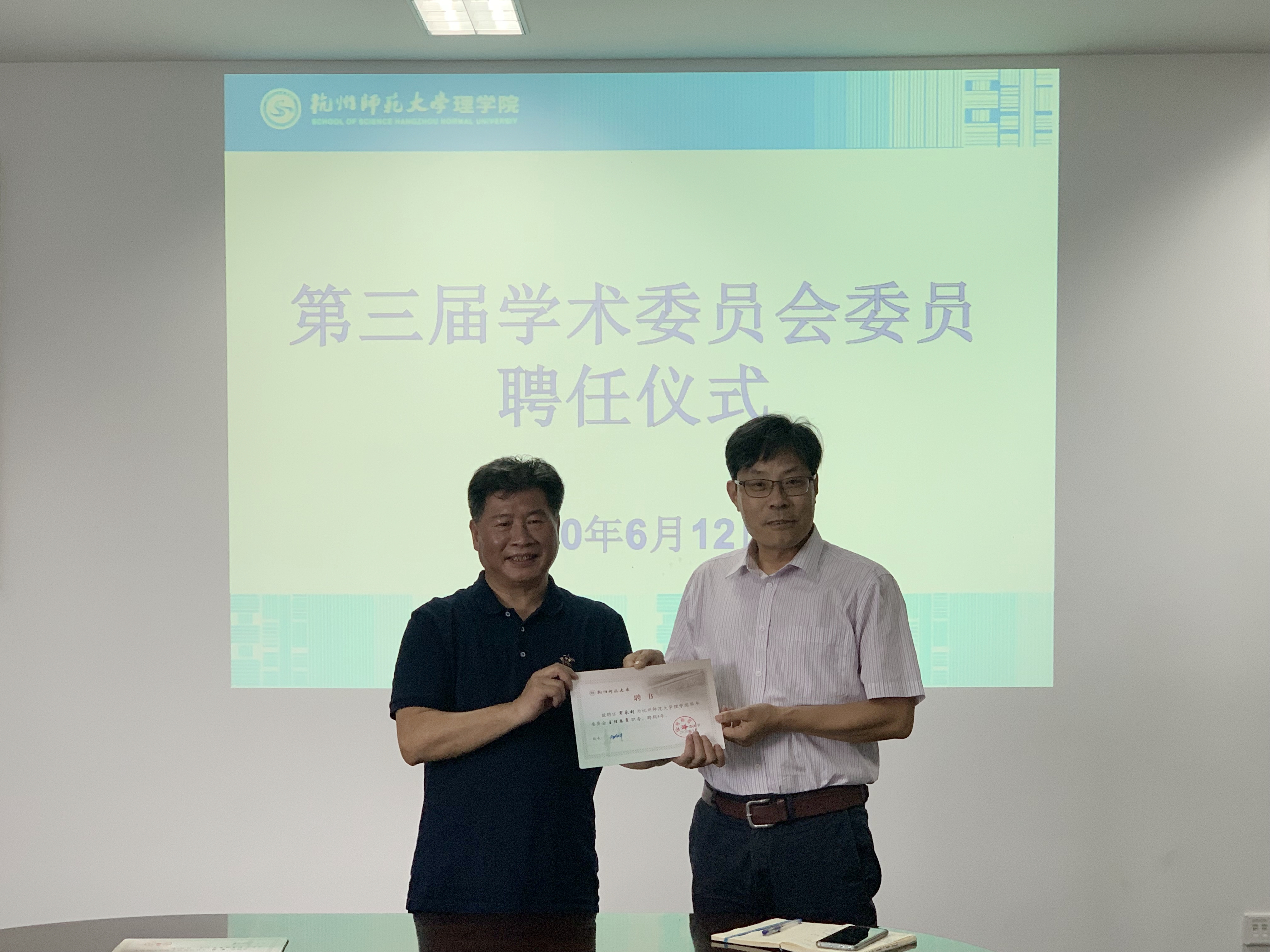 6月12日,如意直播 在勤园19号楼226举行第三届学术委员会委员聘任仪式,院长詹士昌、书记王淑君,以及第三届学术委员会全体委员出席。
