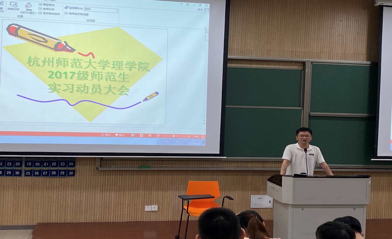 9月16日上午九点半,理学院2017级师范生教育实习动员大会在勤园6-101教室如期举行。学院领导以及全体实习带队教师、2017级全体师范生参加会议。