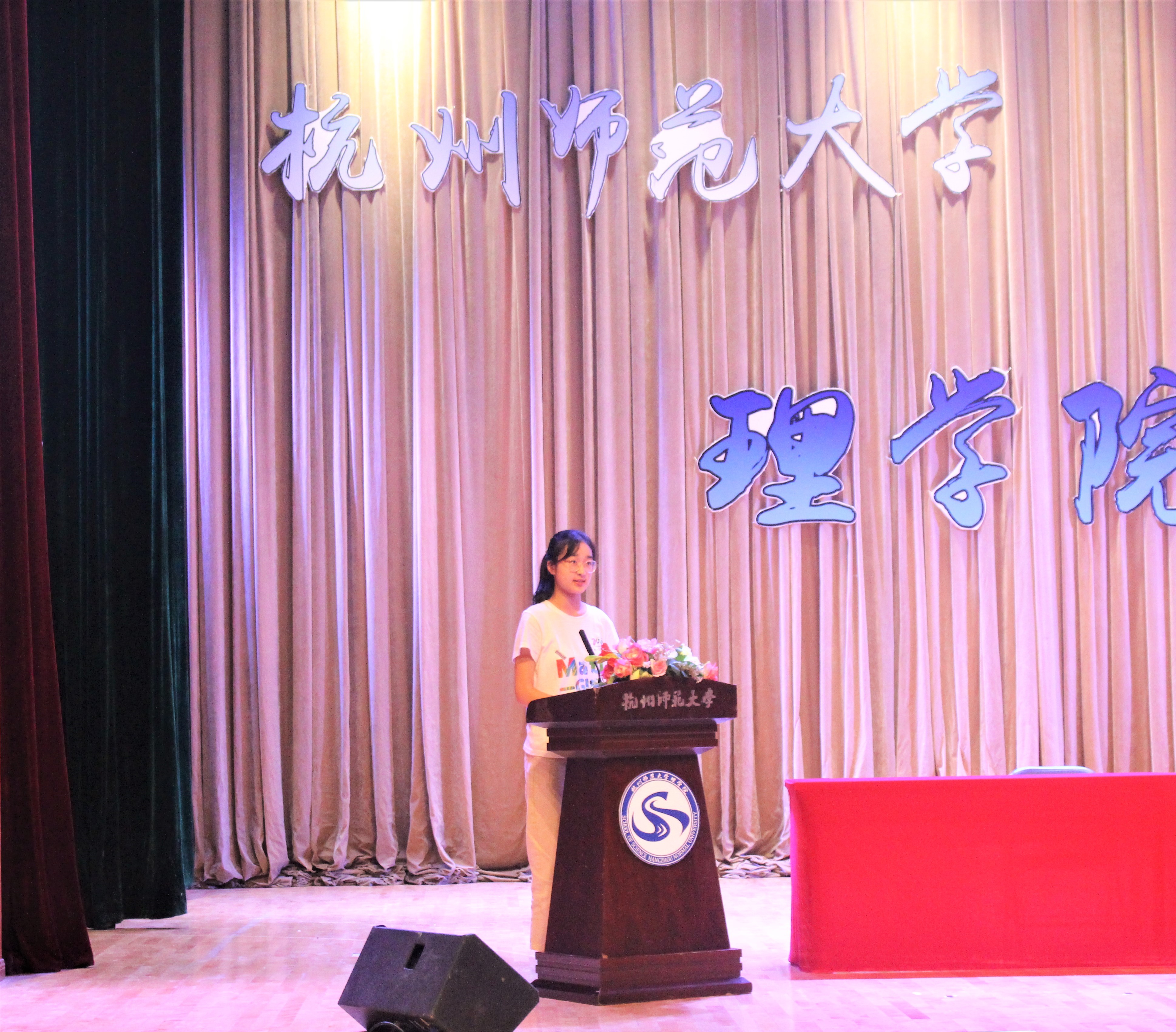 接下来,数学183班沈慕华同学作为老生代表勉励学弟学妹树立正确的目标,养成自律的习惯。数学201班王子涵作为新生代表发言,表达了她对大学生活的期待,表示会不忘初心,努力拼搏。教师代表物理系陈斌老师发言,他期望每位新生能够在大学继续努力学习,做到每件事多坚持一点。