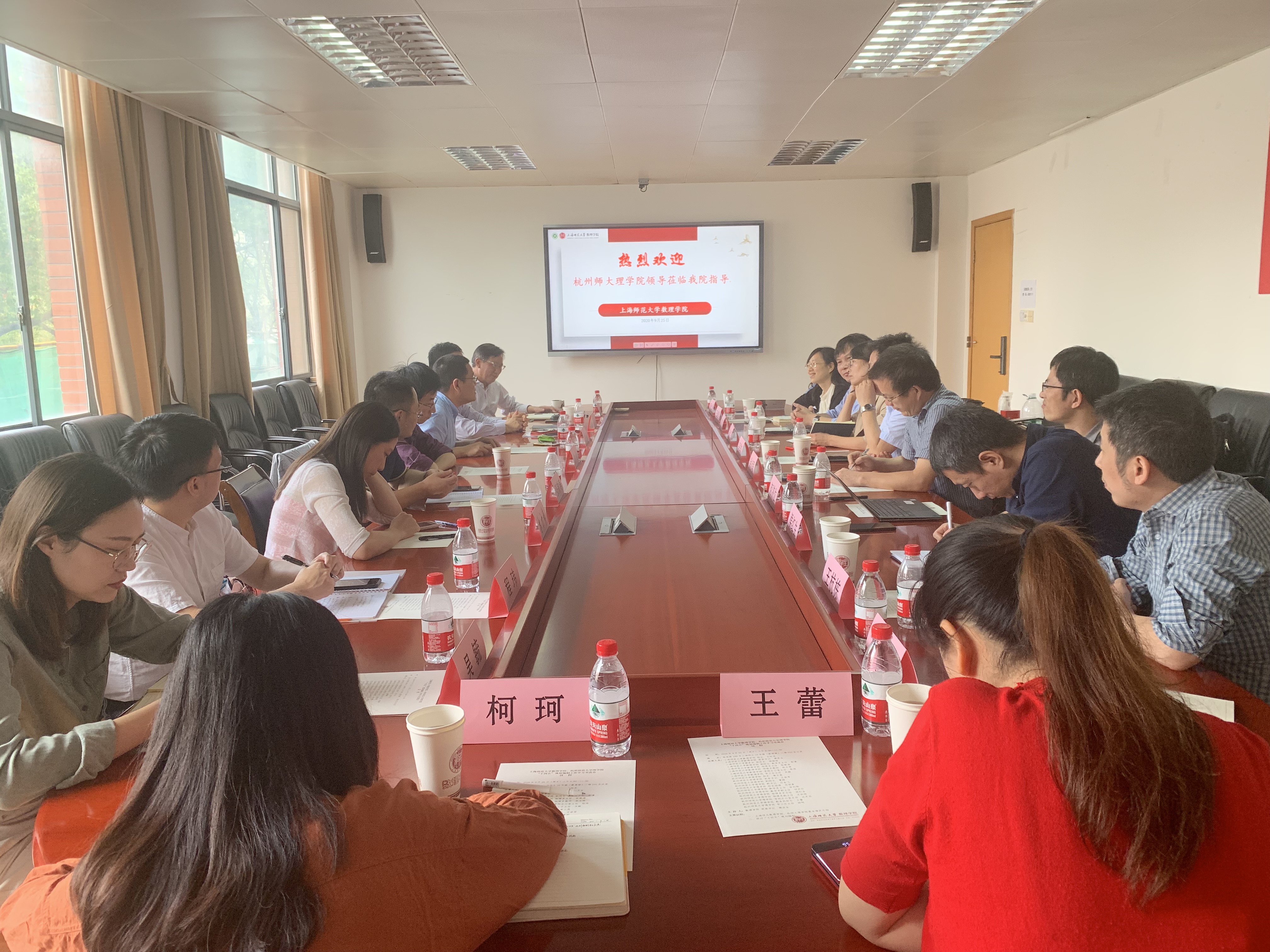 为了更好地科学编制如意直播 “十四五”规划,9月25日,学院院长詹士昌、党委书记王淑君一行赶赴上海师范大学数理学院调研规划工作。上海师范大学数理学院院长石旺舟、党委书记樊连生、教务处副处长储继峰、副院长郭谦等人出席座谈会,如意直播 数学系、物理系、各行政科室负责人陪同调研。座谈会由上海师范大学数理学院党委书记樊连生主持。