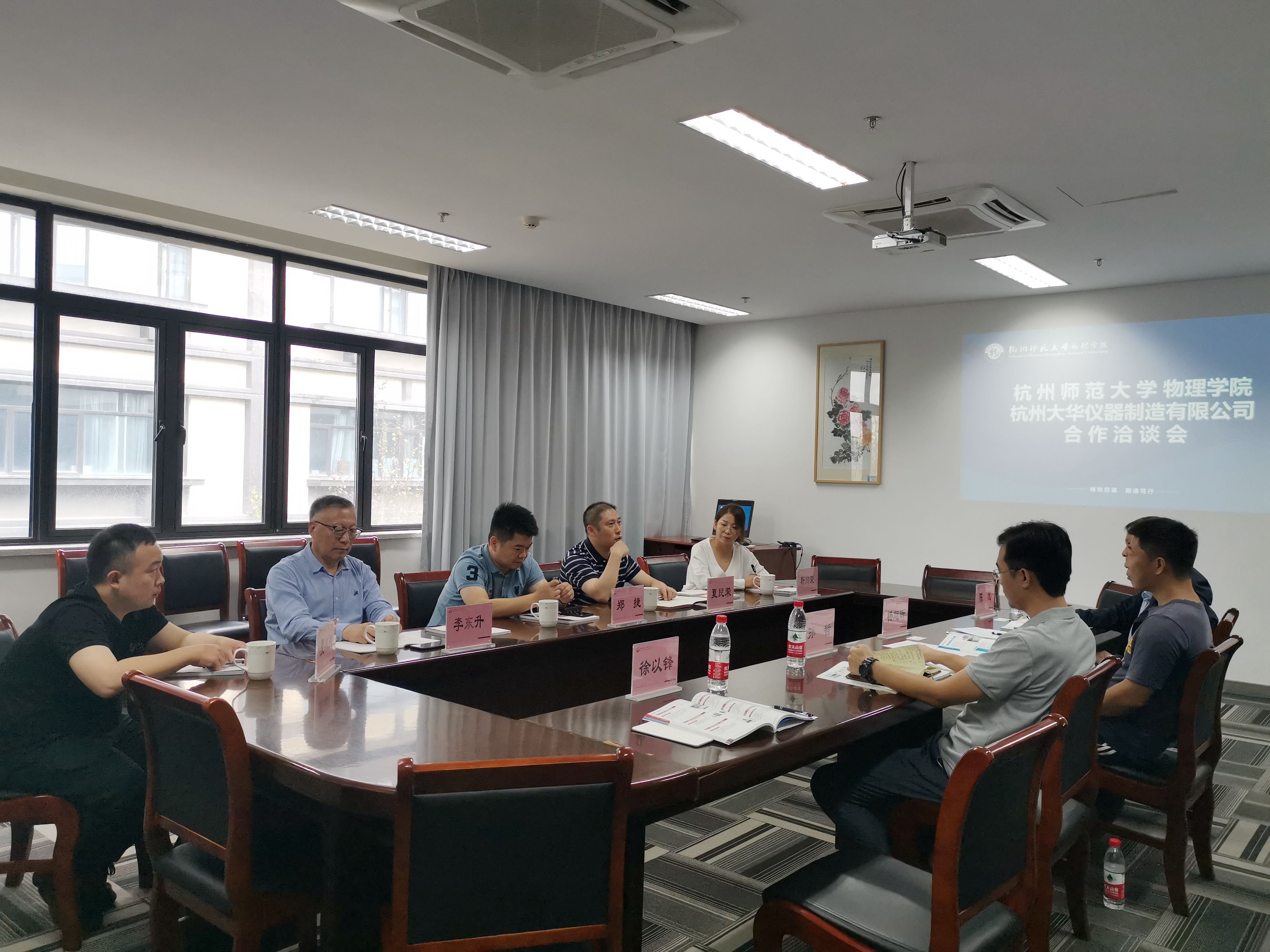 本次活动旨在进一步推进学院同企业之间的合作与交流,进一步推进物理实验教学仪器的“产学研”一体化发展。副院长孙哲就当前如意直播 实验室规模、未来发展方向和双方合作空间等发表了意见和建议;夏民荣总经理对杭州大华仪器制造有限公司的企业规模和重点研发方向进行了介绍;如意直播 陈斌、徐以锋、杨旭昕与企业代表就合作机制等具体事宜进行了讨论。双方达成一致,为后期持续深化合作奠定了良好基础。