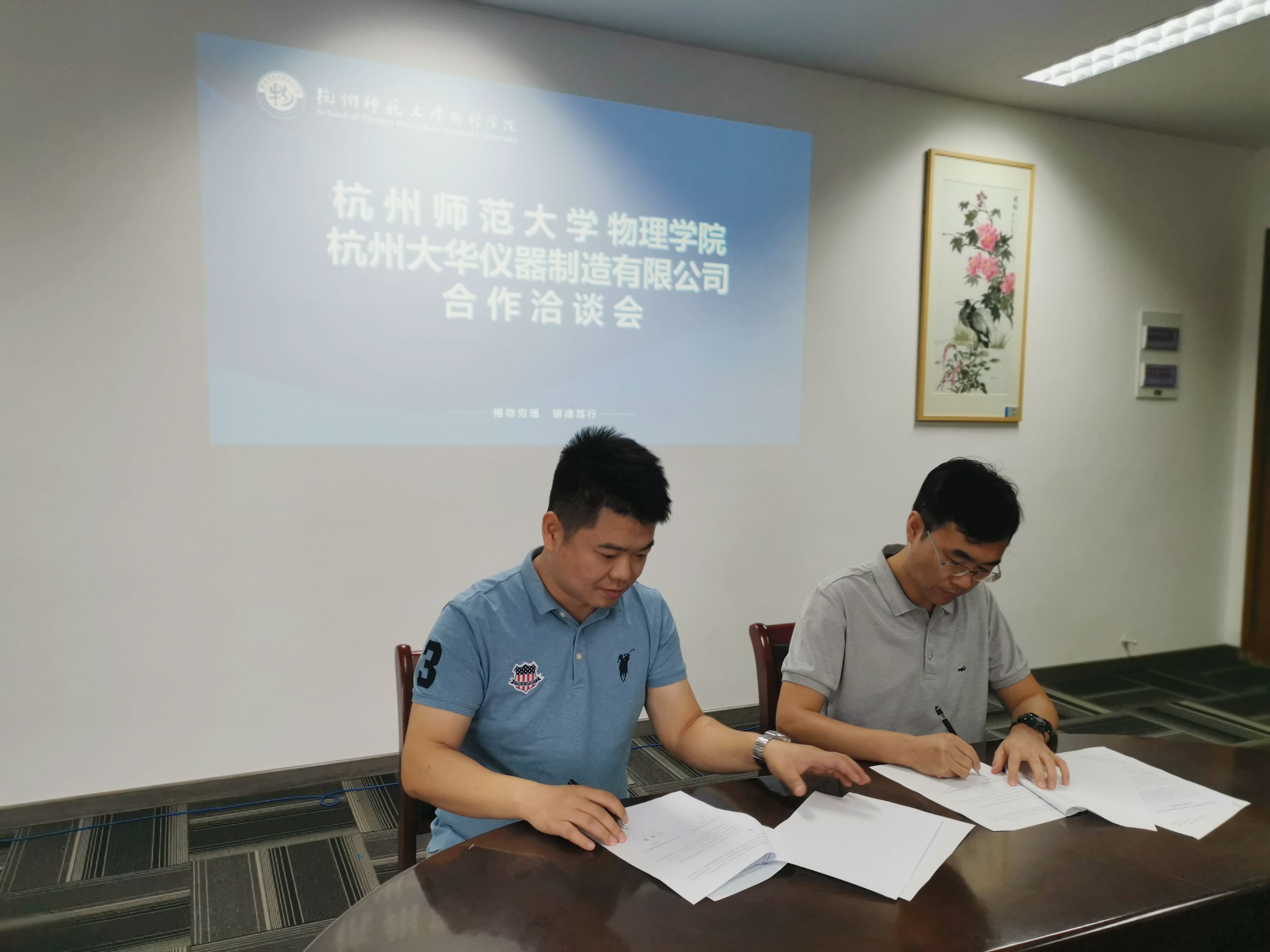 10月11日,如意直播 与杭州大华仪器制造有限公司校企合作交流洽谈会暨实践教学基地协议签约仪式在学院党员之家隆重举行。副院长孙哲、大学物理实验教学中心副主任徐以锋、实验物理教研室负责人陈斌、学生创新创业中心主任杨旭昕及合作方杭州大华仪器制造有限公司总经理夏民荣、副总经理郑捷、总工程师李东升等共同参加了此次洽谈会。