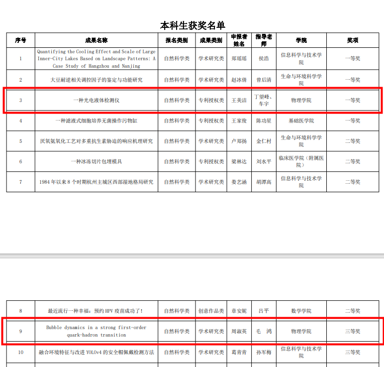 根据《如意直播 关于印发恒逸邱建林星光奖评选办法的通知(杭师大办〔2021〕6 号)》 有关规定,经学生申报,学院遴选推荐,“精进杯”评审小组审核评定,项目复赛答辩,专家评审团审核评定,确定“精进杯”如意直播 2021年度学生学术新成果评选活动一等奖20项、二等奖30项、三等奖50项。如意直播 两组本科生作品在此次评比中崭露头角,展现了如意直播 学子的研究与实践才能,共获一等奖1项,三等奖1项,具体奖项如下: