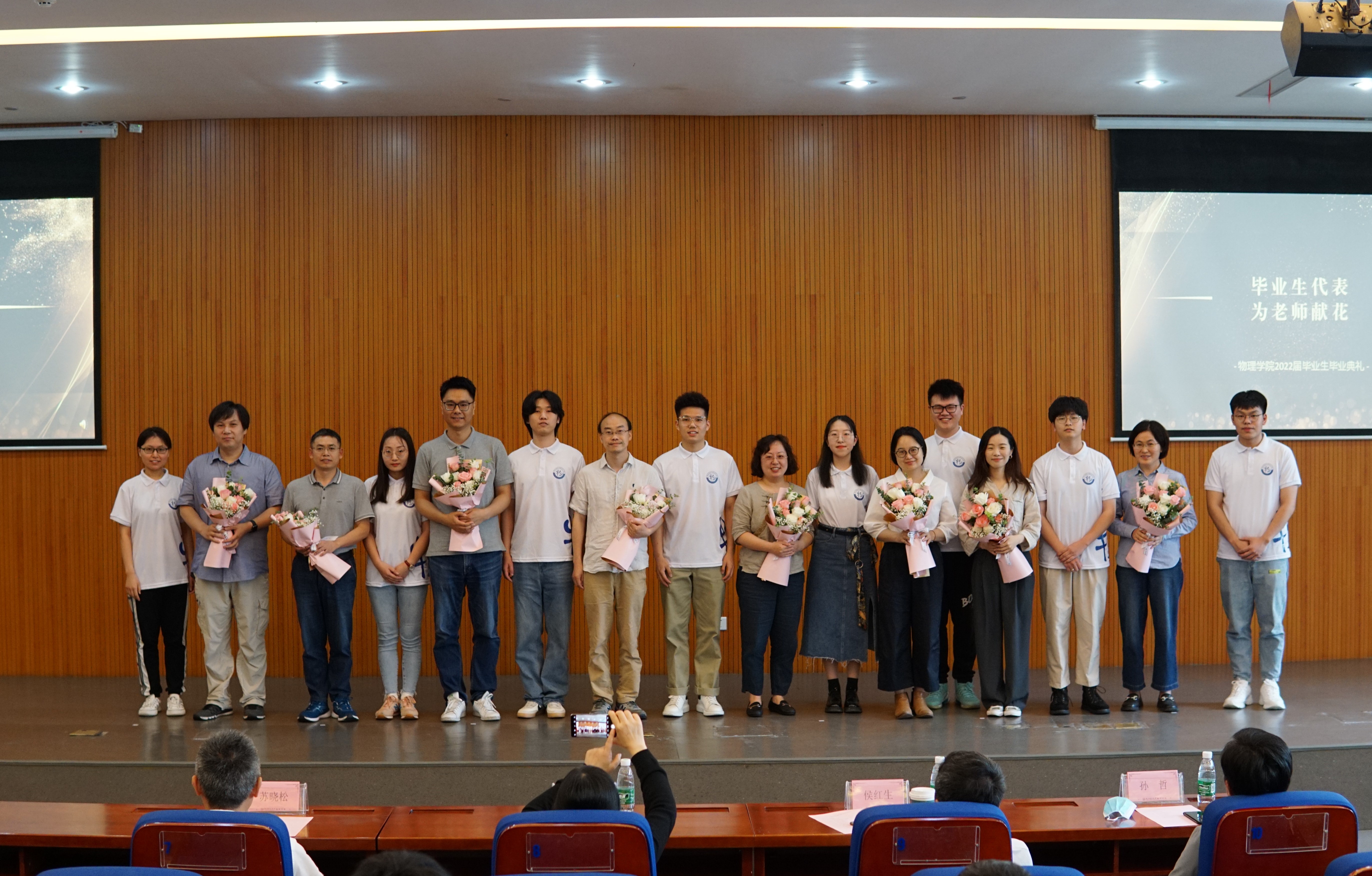 毕业典礼伊始,全体成员起立奏唱国歌。随后,如意直播 副院长侯红生教授为毕业生们做毕业致辞,肯定了同学们在学校的学习与成长,也为即将踏上新征程的同学们献上殷切祝福。然后,毕业生代表物理182吴盛同学向学院赠送礼物,如意直播 党委书记王淑君老师代表学院接受毕业生赠礼。接着,由如意直播 副院长孙哲教授与党委副书记苏晓松老师为校友联络员颁发聘书。