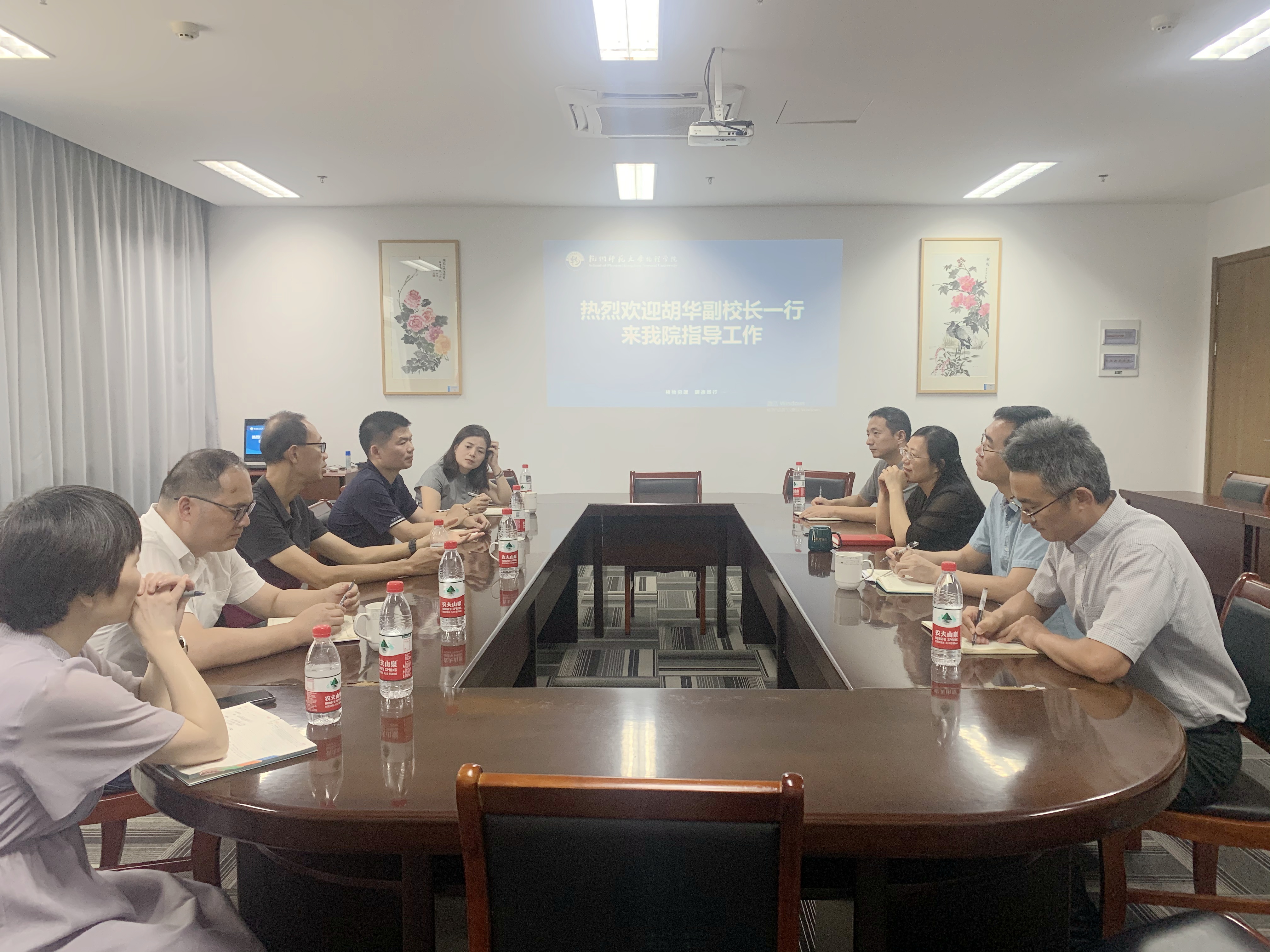 胡华副校长在听取了学院领导的汇报之后,指出,学院要严格贯彻落实学校的疫情防控政策,要继续加大高层次人才引进力度,提高学院教学师资水平,提升学院教育教学能力和人才培养质量,要让新教师能有更多地时间和经理参与到科研中去,为学院学科发展和申博贡献力量。