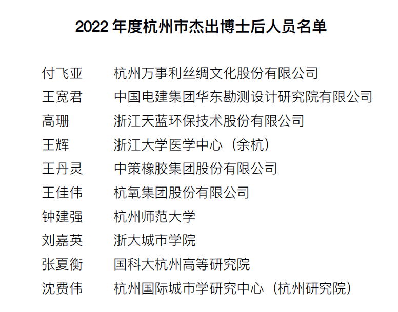 2022年度杭州市杰出博士后人员名单照片