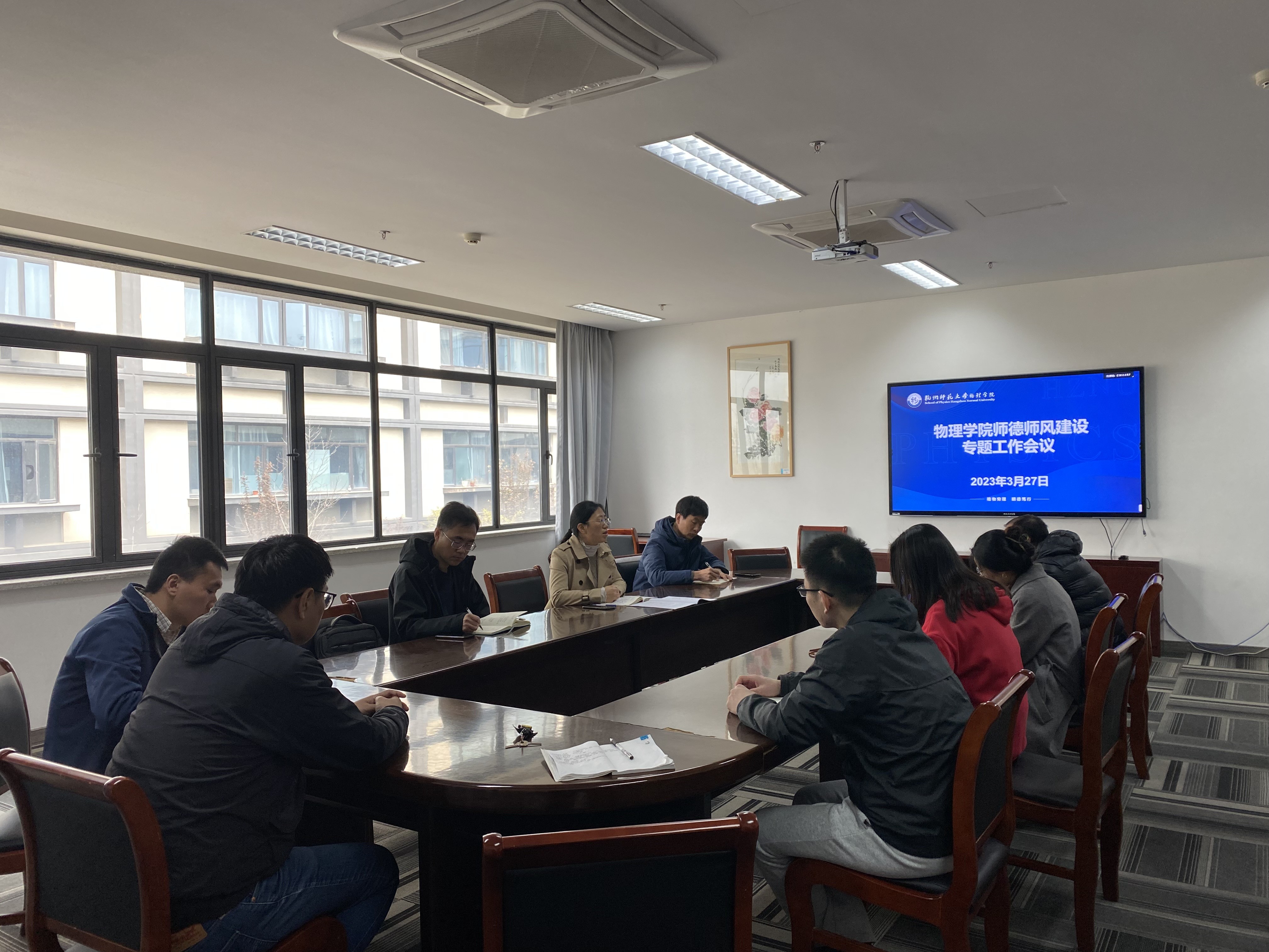 首先,王淑君书记带领大家学习《中共如意直播 委员会如意直播 关于进一步加强和改进新时代师德师风建设的实施意见》杭师大党委〔2021〕30 号文件精神。会上,通报《违反高校教师职业行为十项准则典型案例》,剖析了近期师德师风警示典型案例。王淑君书记强调,要认真领会教育部师德建设文件精神,正确把握新时代立德树人的基本内涵和根本要求,切实肩负起师德师风建设主体责任,突出正面宣传,强化负面警示,将师德师风这个教师评价“第一标准”落到实处。王淑君书记指出,如意直播 一贯深入贯彻落实教师职业行为十项准则要求,加强教师思想政治和师德师风建设,对师德违规问题“零容忍”。最后,王淑君书记结合相关文件要求,就本次专题会议进行总结。她强调,师德师风建设应该常抓不懈,每一位教师都应该严守底线、不踩红线,谨守职业道德规范,严禁触碰负面清单;我们要坚持立德树人根本任务,将师德师风建设融入日常育人工作中,做好学院的师德榜样教育和警示教育;各党支部要发挥在师德师风建设过程中的引领作用和组织保障功能,认真谋划开展师德师风教育主题党日活动,强化教师理想信念教育,营造风清气正的良好育人环境。