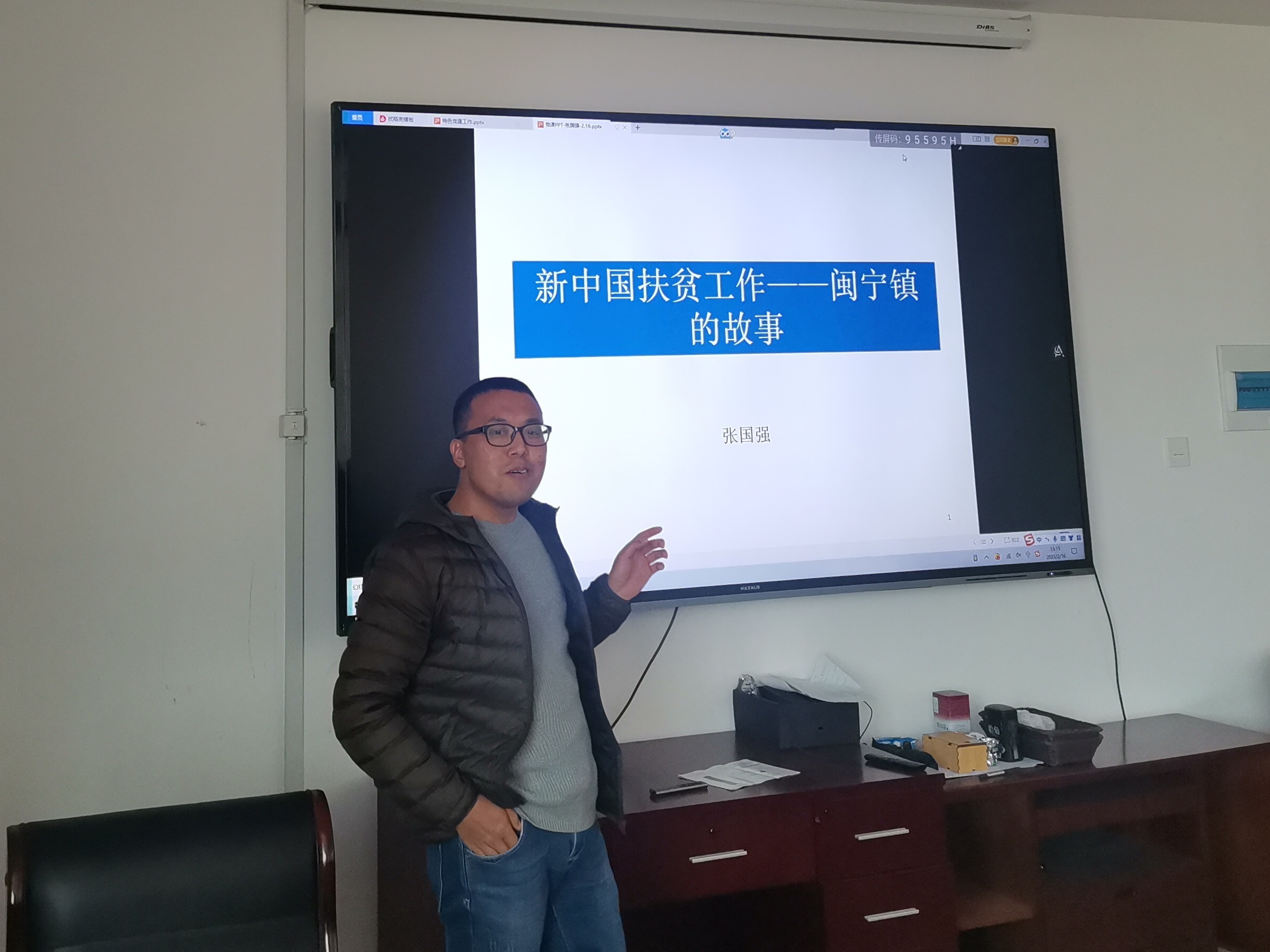 在“人人党课”环节,由支部张国强老师作了题为《新中国扶贫工作——闽宁镇的故事》的报告,介绍了新中国成立以来各个阶段的扶贫措施和成就。从输血救济式扶贫、体制改革推动扶贫,到大规模开发式扶贫、“八七”扶贫攻坚、村级扶贫攻坚,最终通过脱贫攻坚决战于2020年11月23日实现全国832个贫困县全部脱贫摘帽。闽宁镇是热播电视剧《山海情》故事的发生地,该剧讲述了20世纪90年代,宁夏西海固贫困群众在政府号召下完成易地搬迁,在福建的对口帮扶下改造荒滩、开拓家园的奋斗故事。