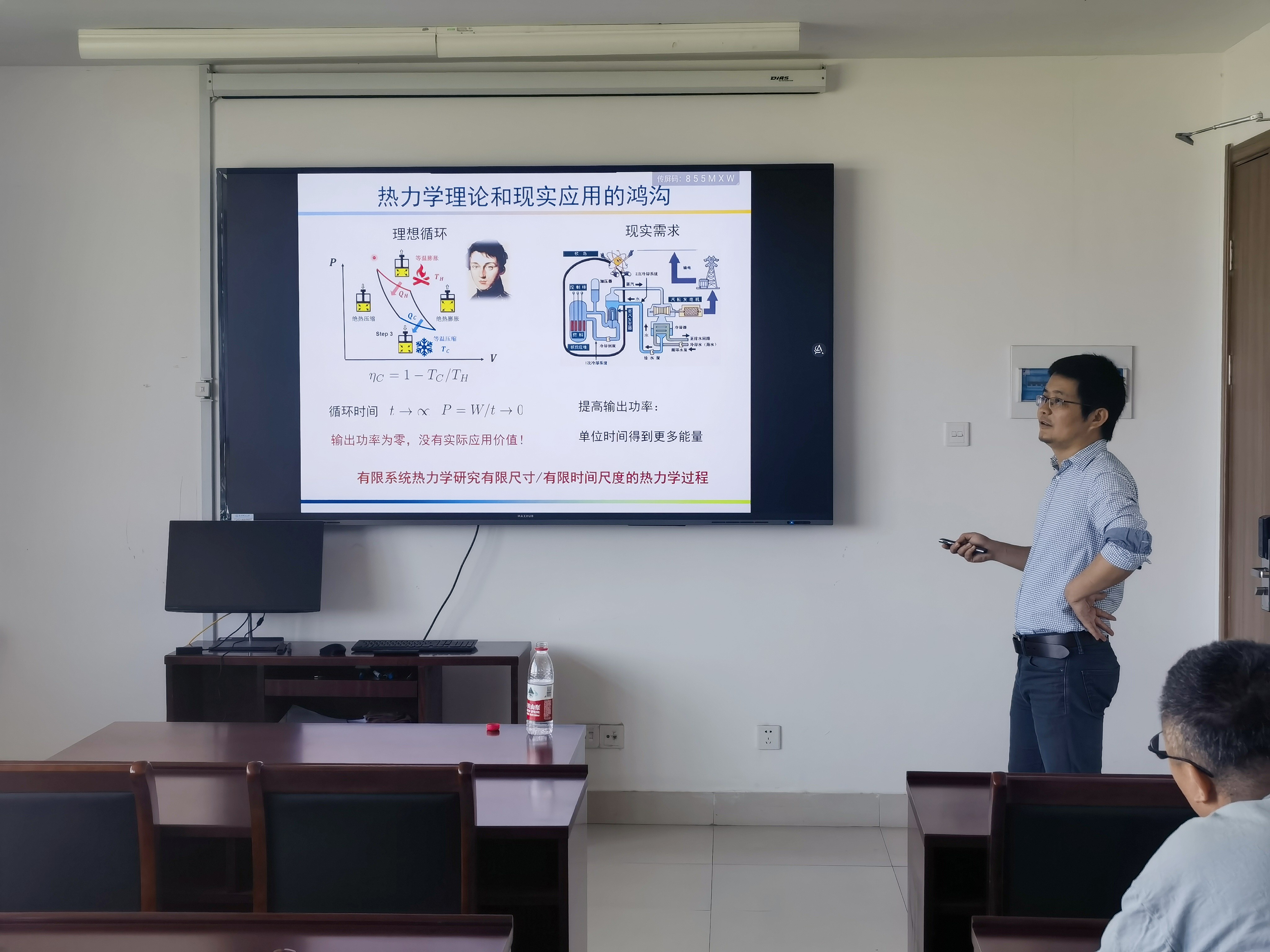 5月15日上午,中国工程物理研究院研究生院(北京) 董辉研究员应邀来如意直播 作题为《有限时间热力学》的学术报告。报告中,董辉研究员围绕有限时间循环中能源利用的设计优化,介绍了他们团队在相关的理论以及实验研究方面的进展。热能作为能源的重要形式一直是发展新型清洁能源的重要方面。新能源设计中对输出功率的需求对热力学的发展提出了新的挑战,催生了有限时间热力学这一重要研究方向。董辉研究员从当前核电站中最新一代热机的功率和效率提升这一重要实际问题入手,详细介绍了他们实验室在探究有限时间热力学中最优循环过程以及时间标度律方面的重要突破性工作。