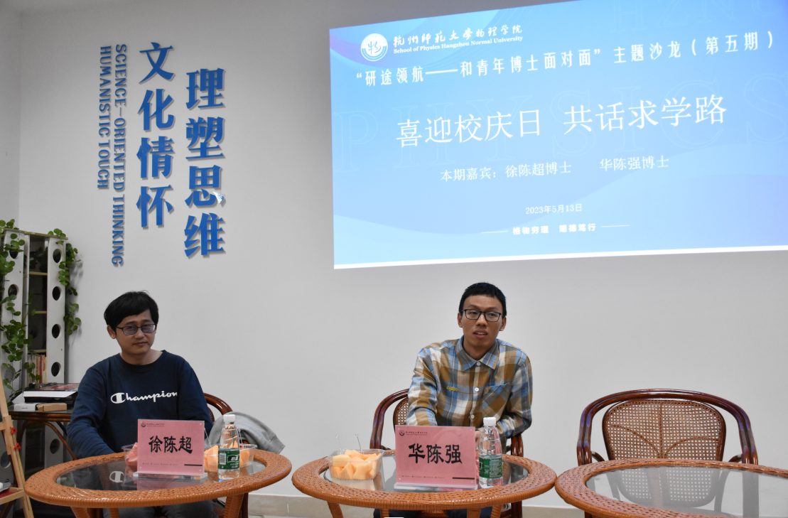 徐陈超老师用幽默风趣的语言讲述了自己从本科开始到回到母校就职期间的丰富经历,配合着图文并茂的ppt,让同学们领略到了浙江大学、日本东京大学、日本国立物质研究所的风采。此外,徐老师还鼓励科教专业的同学也可以尝试报考物理学学术型硕士研究生。由于科教专业的培养方案并没有涉及量子力学这样比较高深的物理课程,因此,徐老师建议对物理感兴趣的同学可以自学或旁听量子力学课程,发掘自己的可能。