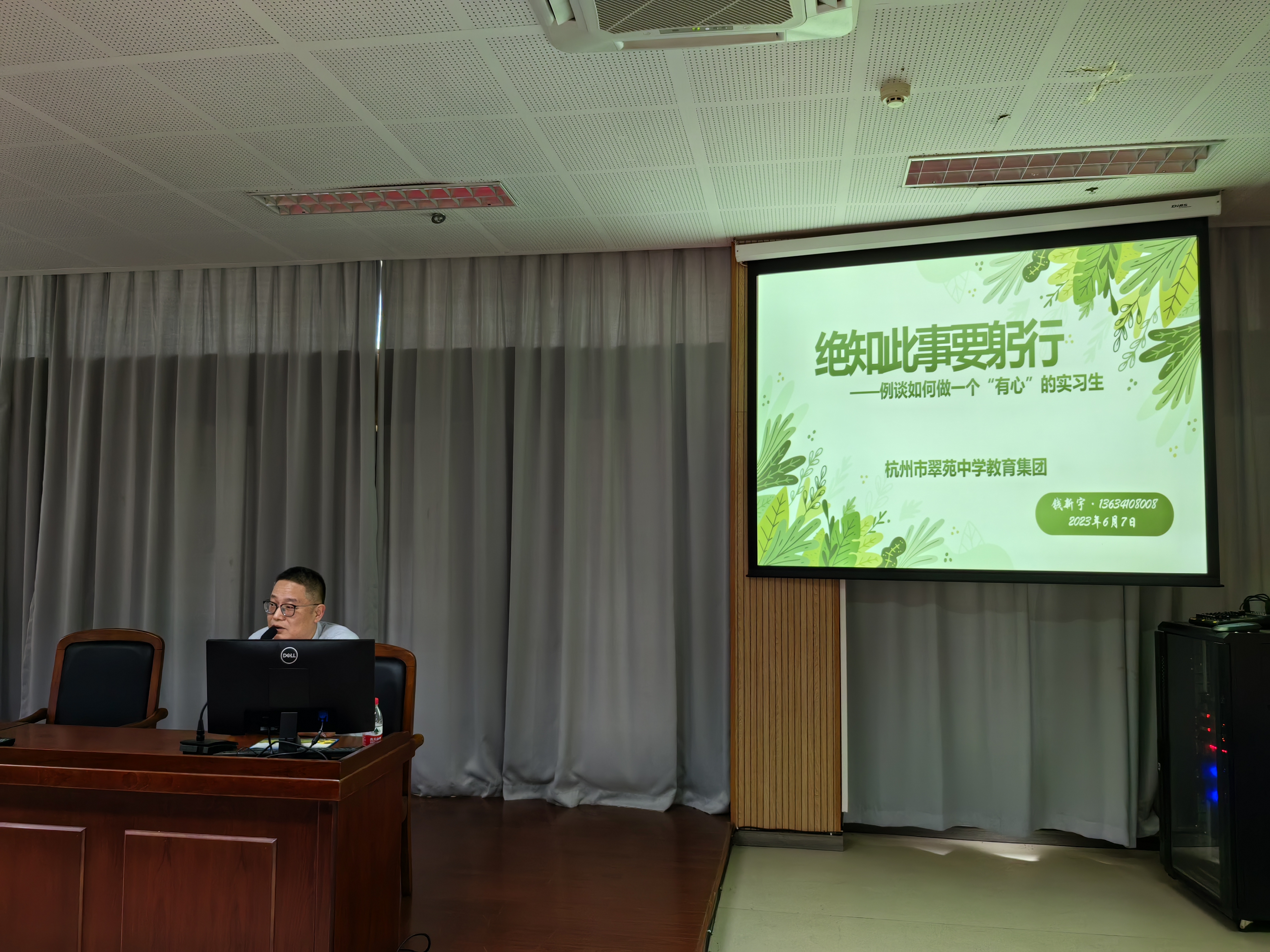 6月7日,杭州翠苑中学钱新宇校长来如意直播 为即将实习的大三学生开展题为“绝知此事要躬行——例谈如何做一个‘有心’的实习生”的讲座。钱校长从实习心态、听课备课、师生关系以及学生管理等几个方面阐述如何做一个有心的实习生。他强调学生在实习过程中要做到主动自信、熟悉学情、用心观察、认真记录,并特别指出实习过程要做到“有温有度”,反思成长。整场讲座钱校长声情并茂,富有激情和感染力,讲座内容丰富,干货满满。讲座结束后同学们积极提问,探讨了诸多问题,钱校长一一解惑,并对同学们的实习提出建议。