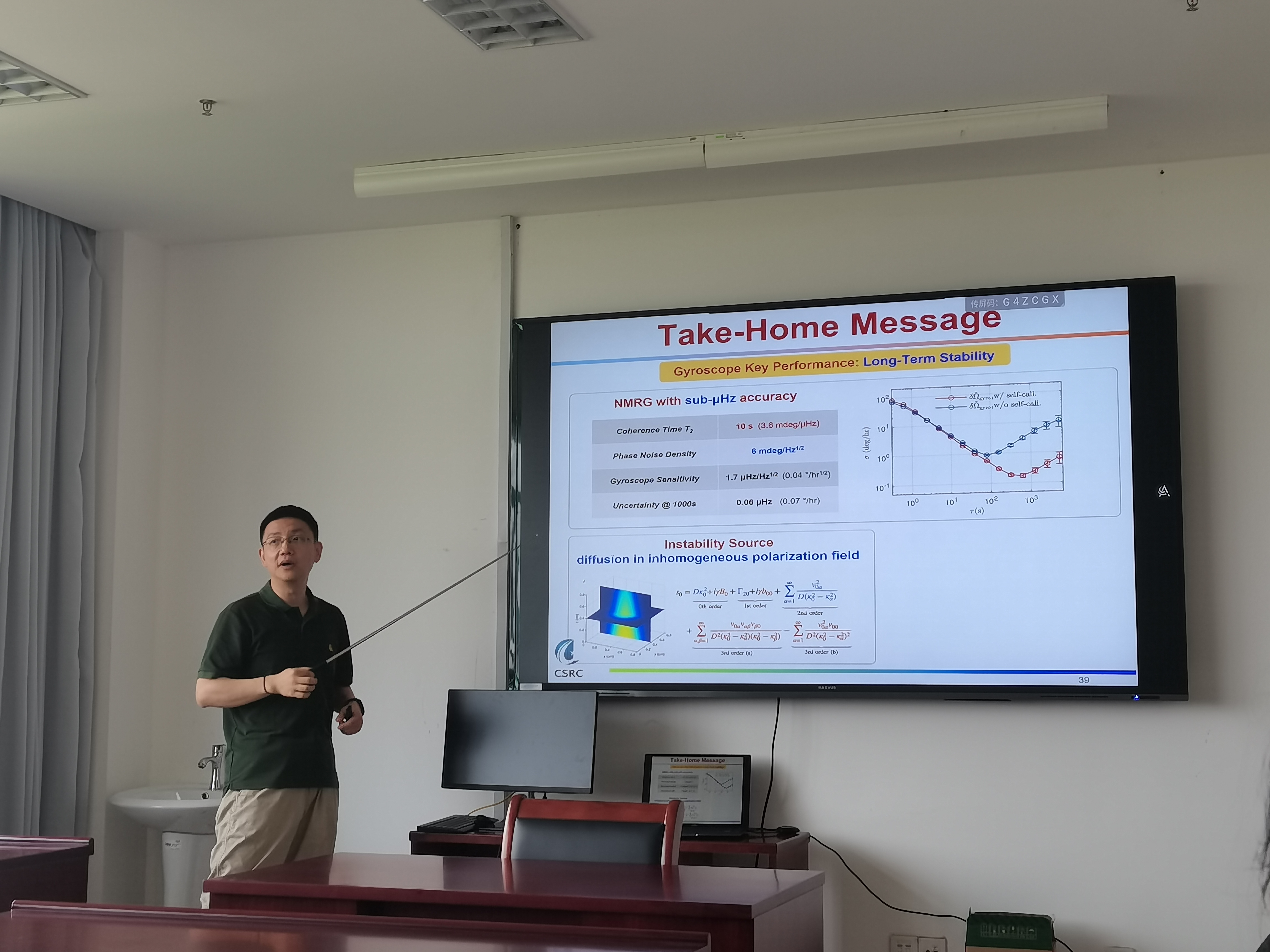 6月12日,北京计算科学研究中心赵楠研究员来如意直播 给光学方向的师生分享交流在原子陀螺仪上的实验进展,本次学术报告标题为“ Navigation by Spins ”。报告中,赵楠研究员分享了用碱金属原子(如Rb原子)的电子自旋和稀有气体原子(如Xe原子)的核自旋来实现核磁共振陀螺仪(NMRG),并且讨论了用于提高NMRG稳定性的几种方法。赵老师风趣幽默,细致入微,讲到关键部分还多次举出实例来引导同学们理解。