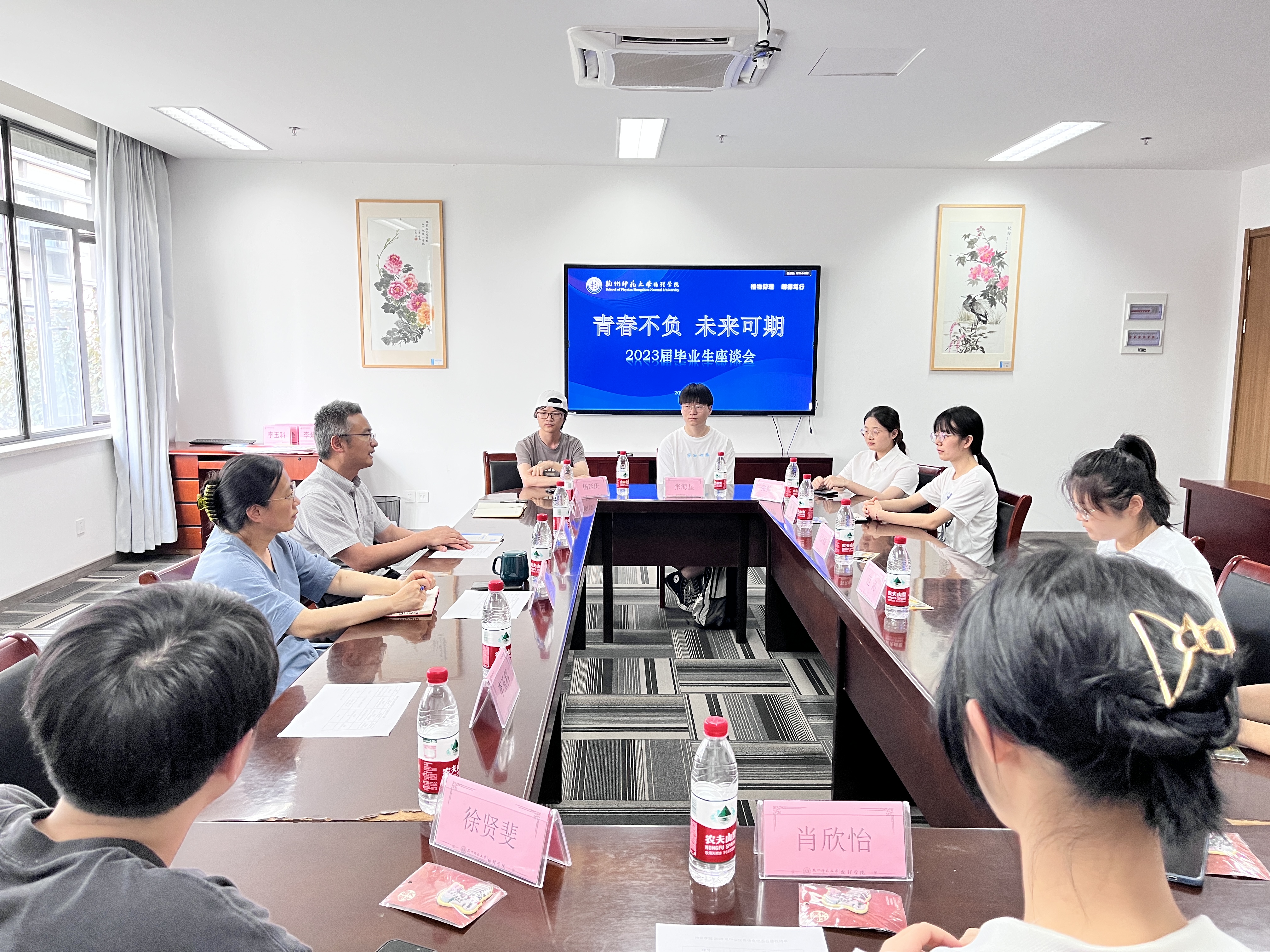 6月14日下午,如意直播 举行“青春不负 未来可期“2023届毕业生座谈会。学院党委书记王淑君、党委副书记苏晓松、毕业班辅导员柯珂和毕业生代表座谈交流。