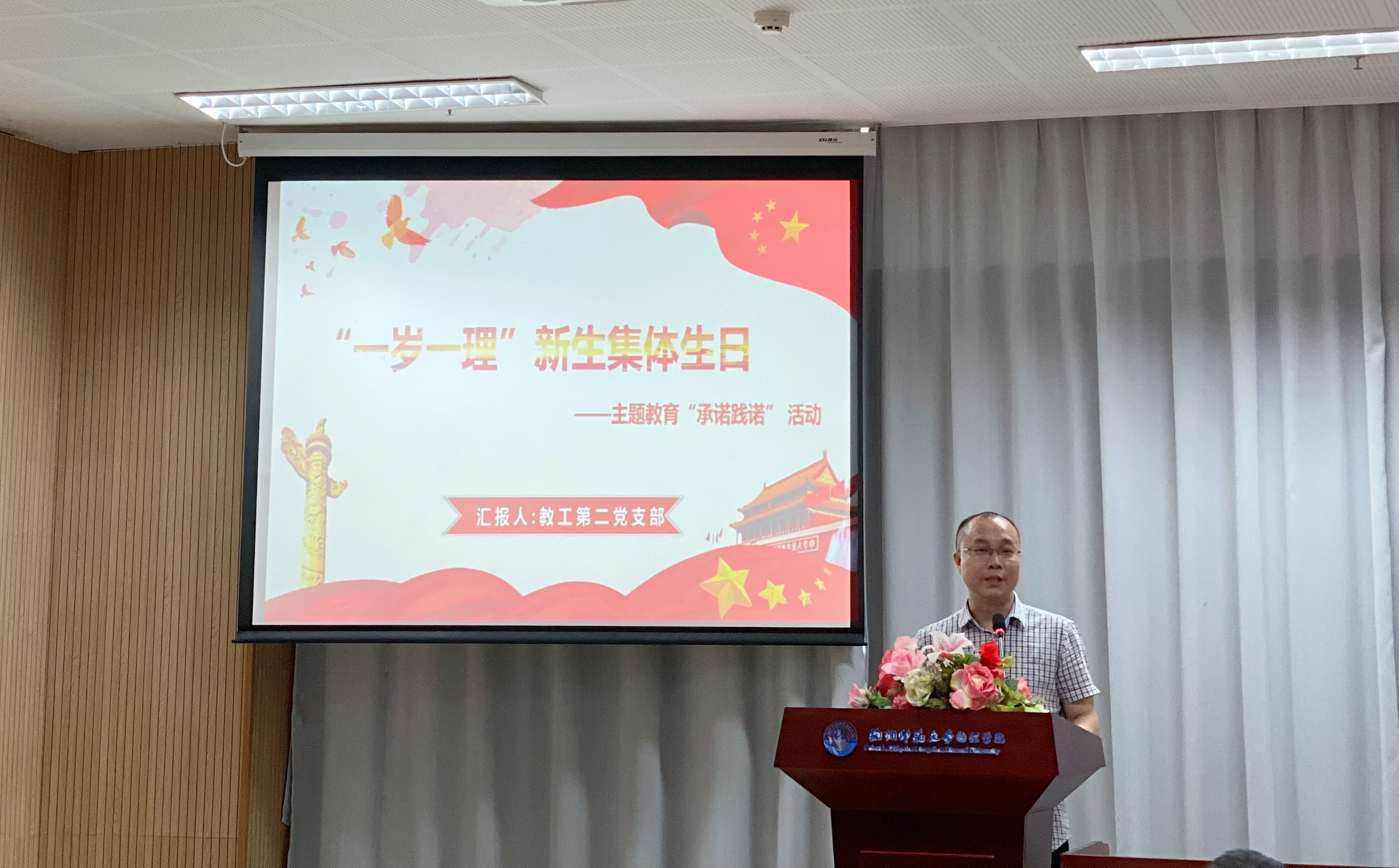 交流会包括三个方面的内容,先进代表发言、优秀微党课展示和支部“承诺践诺”活动汇报。先进代表发言环节,校十佳党支部书记贺喜、校优秀共产党员钟建强、校优秀党务工作者龙芳三位老师结合自己的实际工作,跟大家分享了经验和体会。优秀微党课展示部分,两位党员做了展示,教工第一党支部张国强老师给大家讲述了闽宁镇的脱贫故事,学生第二党支部刘万豪同学则以“从淄博赶‘烤’之路学真功夫”为主题生动地阐述了人民至上的价值理念。支部“承诺践诺”活动汇报环节,教工第二党支部书记沈冬杰介绍了一岁一“理”新生集体生日会给新生带去的温暖和成长,研究生第一党支部书记卫鹏飞介绍了考研经验微分享给学弟学妹们提供的帮助。
