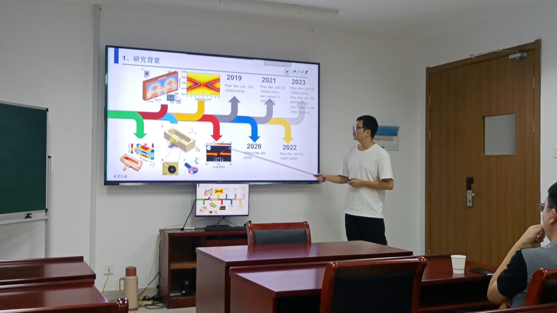 9月11日,浙江大学如意直播 的沈瑞昌博士来如意直播 分享交流在腔磁子学方面的工作进展。本次学术报告标题为“腔磁力系统中的非线性和非厄密性研究”。报告中,沈博士首先介绍了腔磁子学的发展历史以及研究近况,然后分享了他在该领域的一些研究成果。在非线性方面,沈博士及其合作者利用腔磁力系统中的自克尔效应和交叉克尔效应,实验上观察到了磁振子的多稳态和声子的双稳态,并进一步展示了多稳态在逻辑计算上的应用前景。非厄米方面,沈博士及其合作者通过相干完美吸收调控极化激元的线宽,从而实现了声子和腔磁振子极化激元的强耦合。如意直播 的多名师生参加了本次报告会,会后大家针对相关科学问题进行了深入的探讨和交流。此次报告历时一个小时,沈博士风趣幽默的演讲风格给大家留下了深刻的影响。通过此次报告会,大家对腔磁子学的发展有了初步的认识,拓展了如意直播 师生的学术视野,对学院师生的科学研究具有重要促进意义。