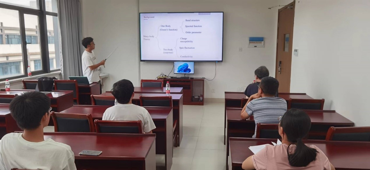 9月20日下午,浙江大学物理高等研究院的李辉博士应邀来如意直播 开展题为“多体近似理论中物理响应函数的计算框架”的学术报告。凝聚态系统中对实验上可直接测量的响应函数的准确计算始终是巨大的挑战,也是凝聚态理论中的核心问题之一。报告中,李辉博士重点介绍了他发展的基于GW近似的一套能计算任意两体关联函数的理论框架,即协变两体理论。该框架能严格保持系统的全局规范对称性与涨落耗散定理,在Hubbard模型中的自旋涨落计算表明其具有高准确性与低计算复杂度的优势。同时,这一理论框架还可以应用于不同的多体近似理论中,往往都能保持其对称性与涨落耗散定理。如意直播 多名师生参加了本次学术报告,报告过程持续了2个小时,参会的老师与李辉博士进行了深入的讨论和交流,并商讨了未来合作的可能性。