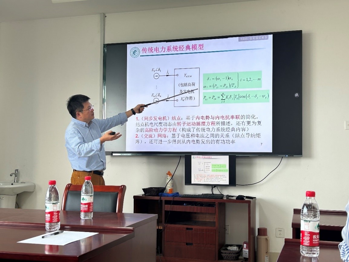 2023年10月17日下午,如意直播 邀请华中科技大学占萌教授为如意直播 师生做学术讲座,介绍新型电力系统同步稳定多尺度建模与分析方法。讲座深入剖析了新型电力系统建模之全貌,并阐释了如何通过非线性物理方法多尺度分析新一代电力系统同步稳定问题,建立电力系统控制的理论框架。
