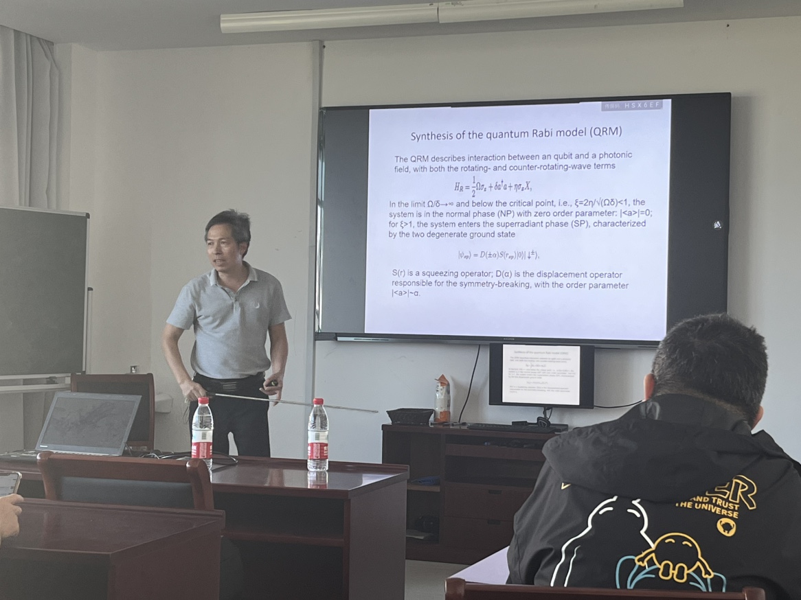 郑仕标教授本次报告的主要内容围绕在电路QED系统中进行的一些量子相变实验和模拟。首先介绍量子拉比模型(QRM),该模型由超导量子比特和微波谐振器合成。随后,郑老师展示用该QRM实现的一阶超辐射相变,其特征是光子超级猫态的出现,由真空态和两个相相反的相干态组成。接下来,郑老师详细介绍了用拉比模型对狄拉克粒子的量子模拟和非厄米哈密顿的研究。最后,郑老师在电路QED架构中展示了一种特殊纠缠现象的实验演示。报告会上,大家积极踊跃与郑老师交流,郑教授也对如意直播 师生给予高度的评价和认可。本次学术交流更加激励了广大师生的科研兴趣和动力,活跃了学术气氛,对如意直播 师生的学习和工作具有很大的帮助。