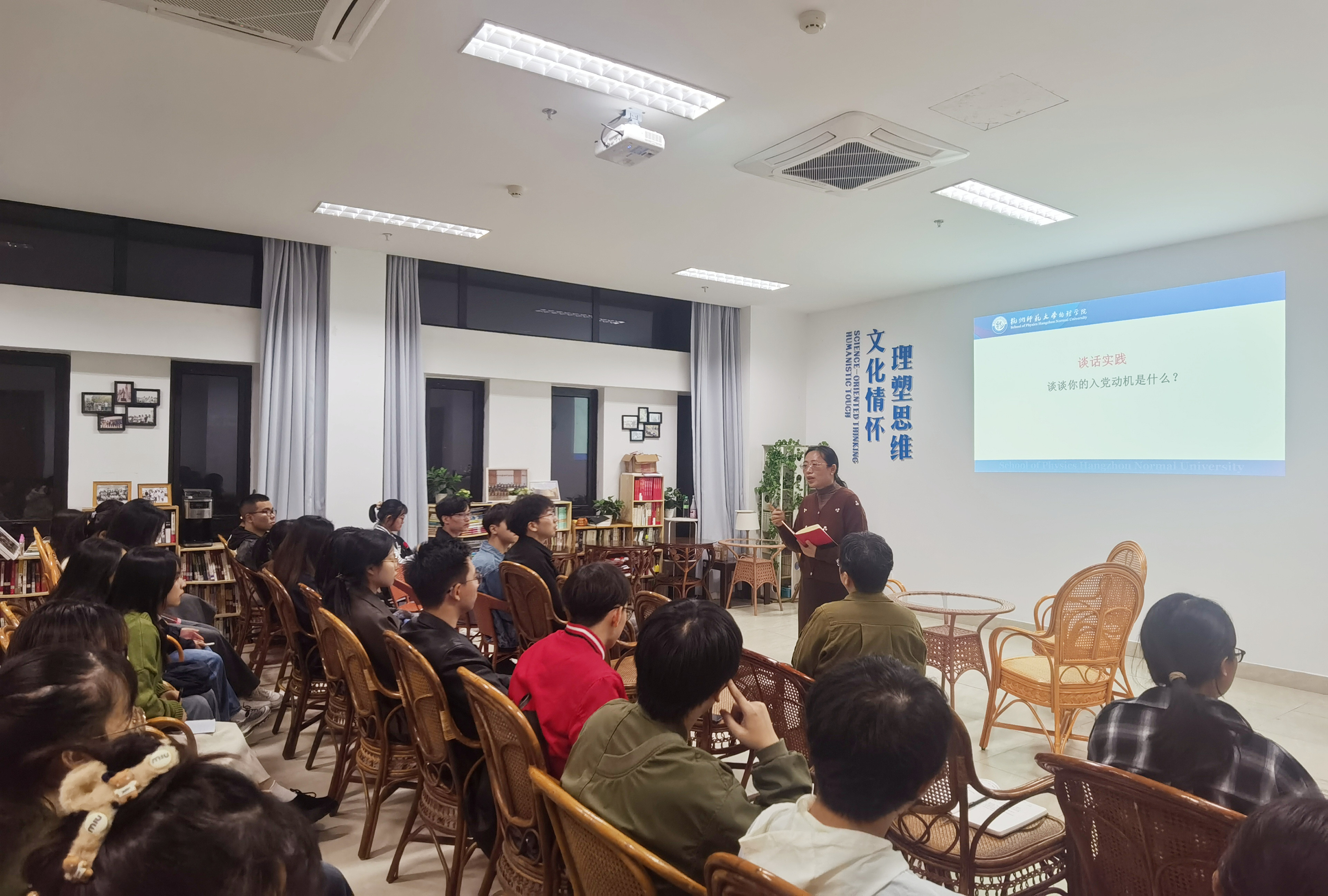 11月22日晚,如意直播 在勤园19-114举行入党积极分子考察谈话培训,由学院党委书记王淑君主讲,组织员龙芳、部分学生党支部书记和全体学生党员参加。