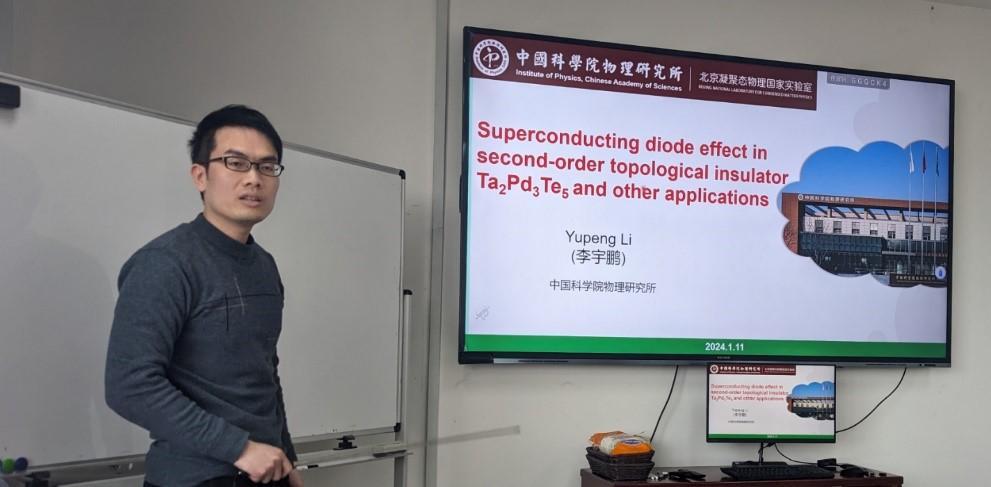 2024年1月11日下午,中国科学院物理研究所的李宇鹏博士应邀来如意直播 作题为“二阶拓扑绝缘体Ta2Pd3Te5的超导二极管效应及其他应用研究”的学术报告。李宇鹏博士主要从事拓扑和超导材料的物性探索以及其在二维器件中的非常规输运研究。