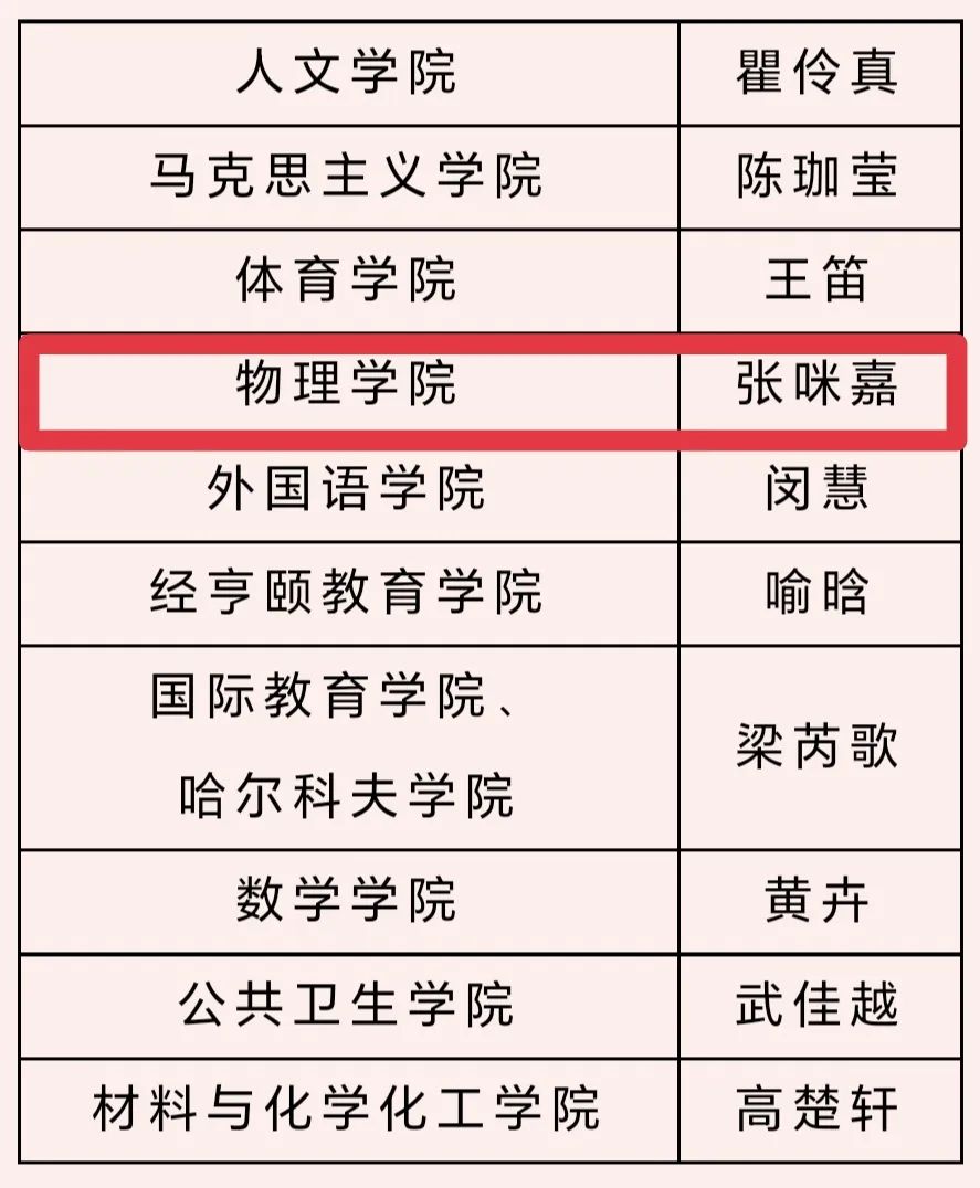 最后再次祝贺张咪嘉同学荣获2023年度“十佳团干部”荣誉称号!希望物院学子都能以张咪嘉同学为榜样,充分理解运用物理定律,致广大而尽细微,发挥青年力量,绽放青春光芒!