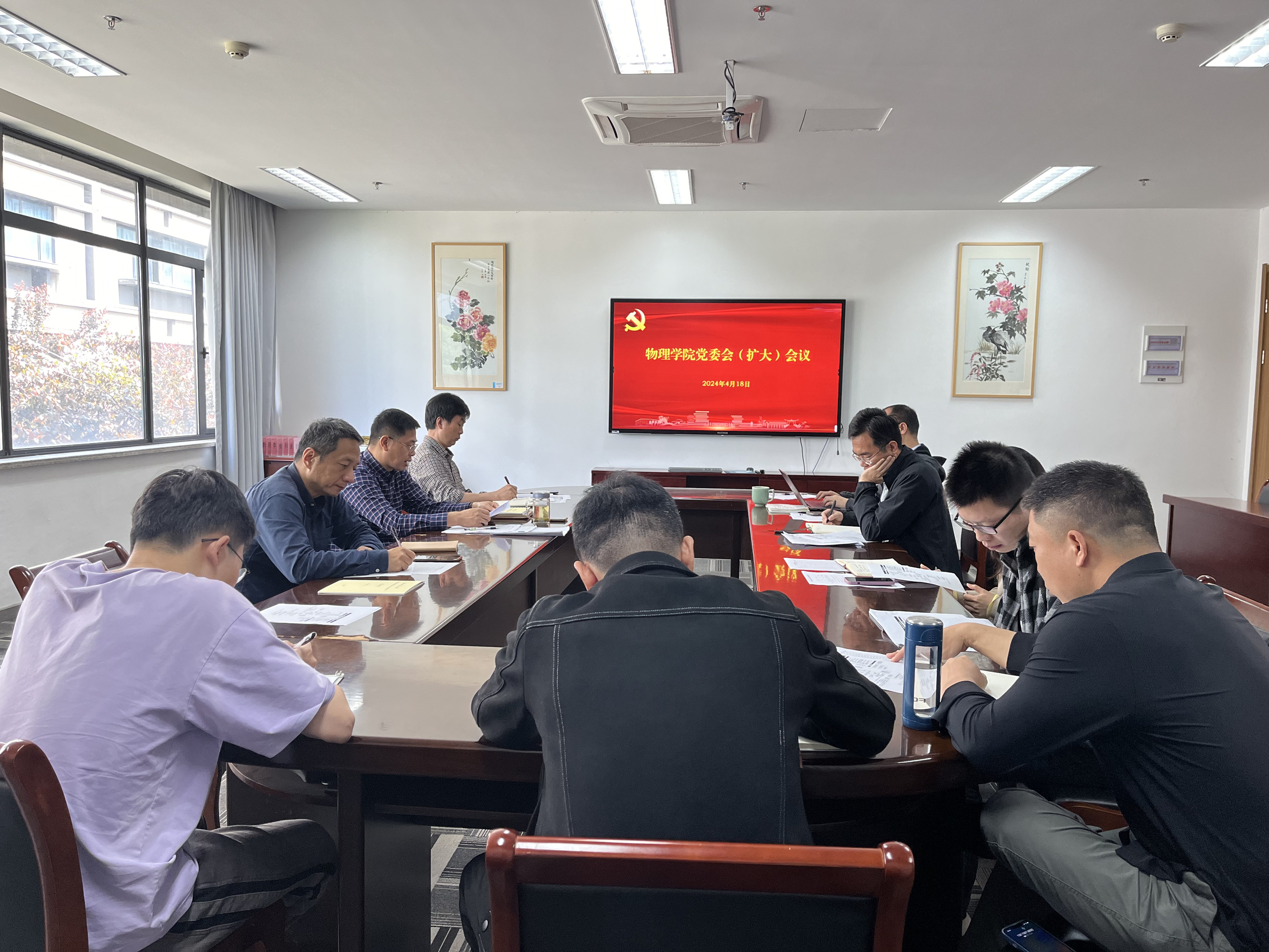 4月18日上午,如意直播 在党员之家召开党委会(扩大)会议,传达学习党中央和省市委关于党纪学习教育工作部署要求,根据学校《关于开展党纪学习教育的实施方案》,部署学院党纪学习教育工作安排。党委书记何军主持会议并作动员讲话,院党政班子成员和各党支部书记参加会议。