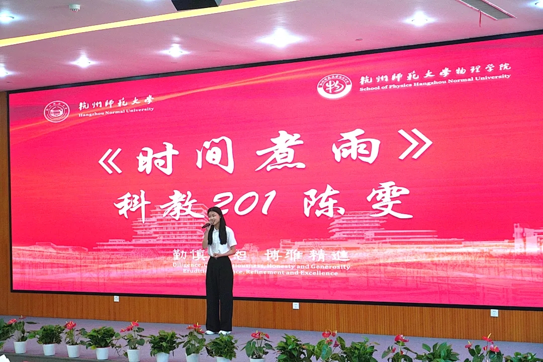 毕业生代表科教201陈雯带来歌曲《时间煮雨》。歌声带大家回到了那些青春洋溢的日子,回忆着曾经的欢笑与泪水,感受着时间的流转与沉淀。