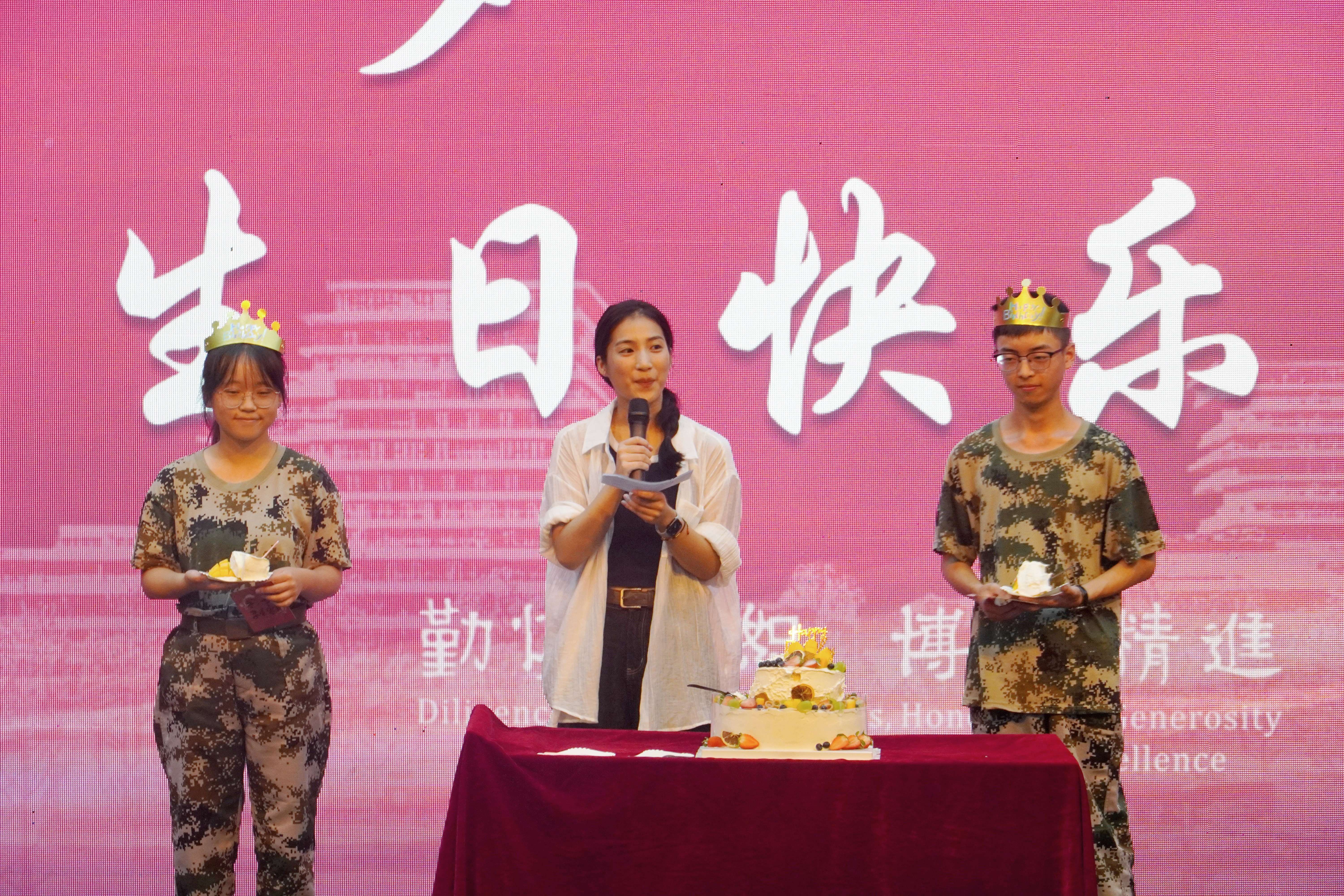一岁一“理”是如意直播 的传统活动,在开学第一课的最后,大家共同为物理243班刘梦怡和物理242班王费佳两位寿星庆祝生日。在老师们和全体2024级新生们的见证下,两位同学在蛋糕前许下生日心愿,辅导员周莹老师为她们切下蛋糕并送上了自己满满的祝福。