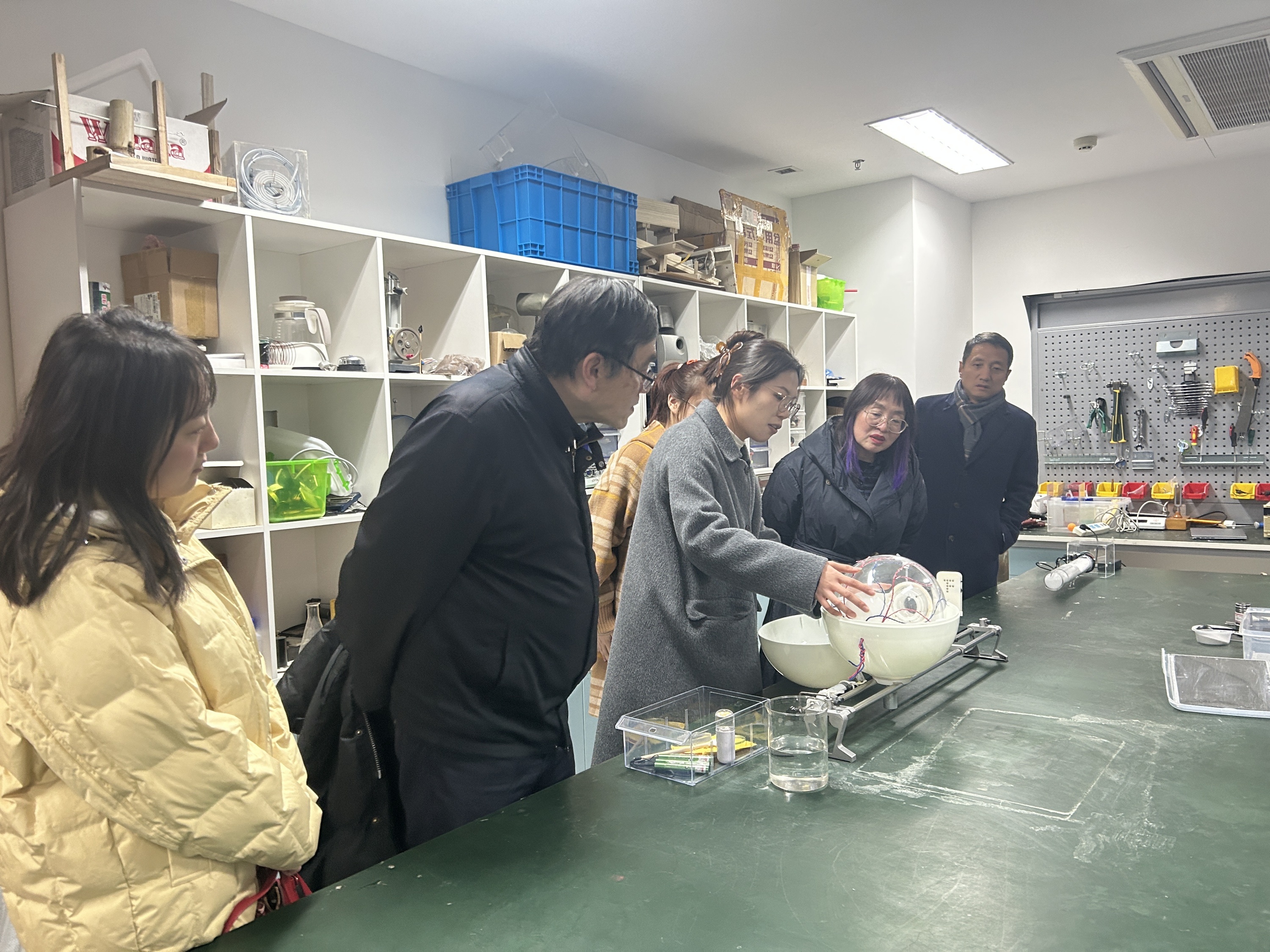 座谈会结束后,专家们一行在学院老师的陪同下,实地参观了研究性物理实验室,进一步了解了学院在实验教学方面的硬件设施和学生练习实验教学的日常。
