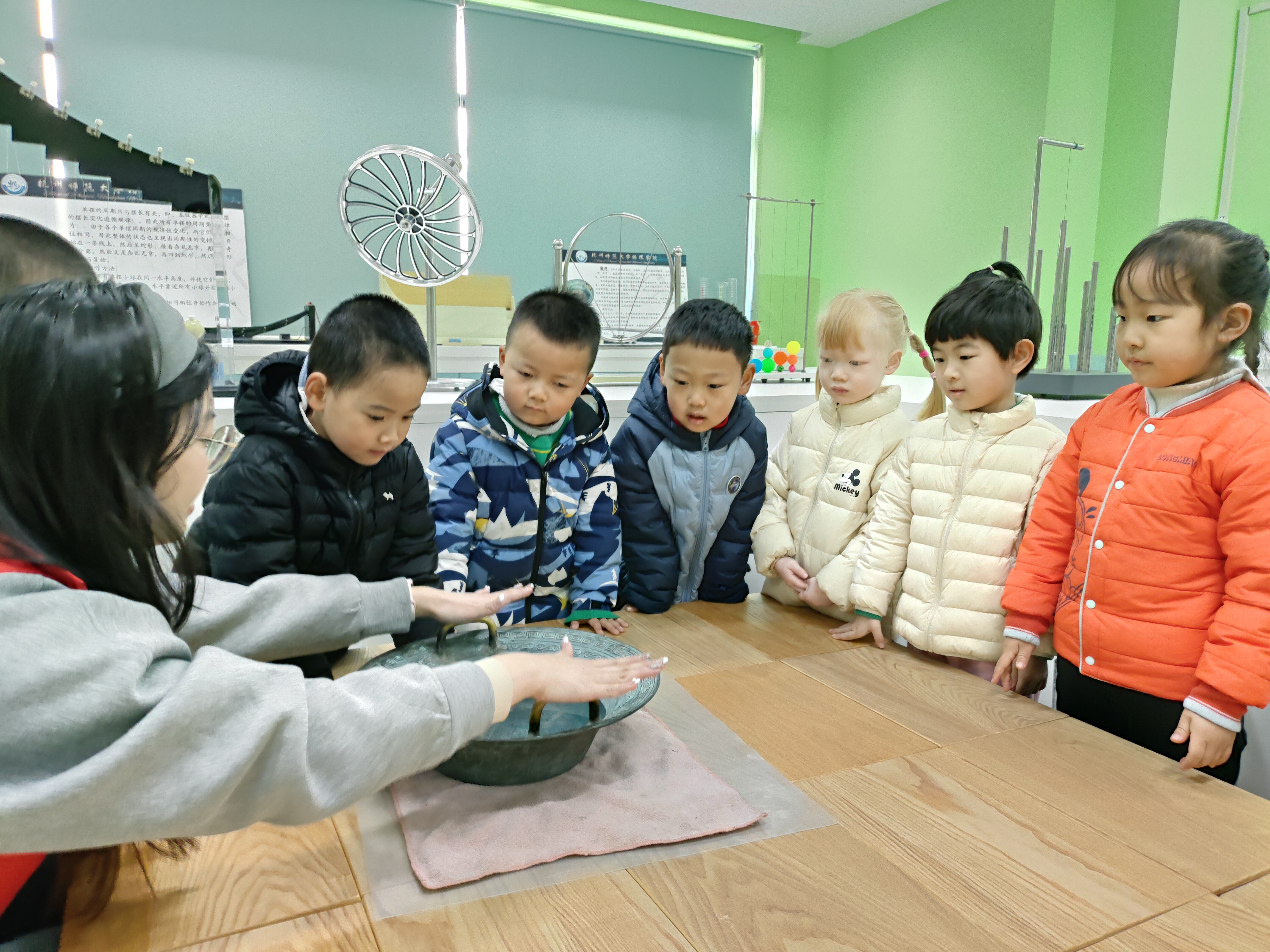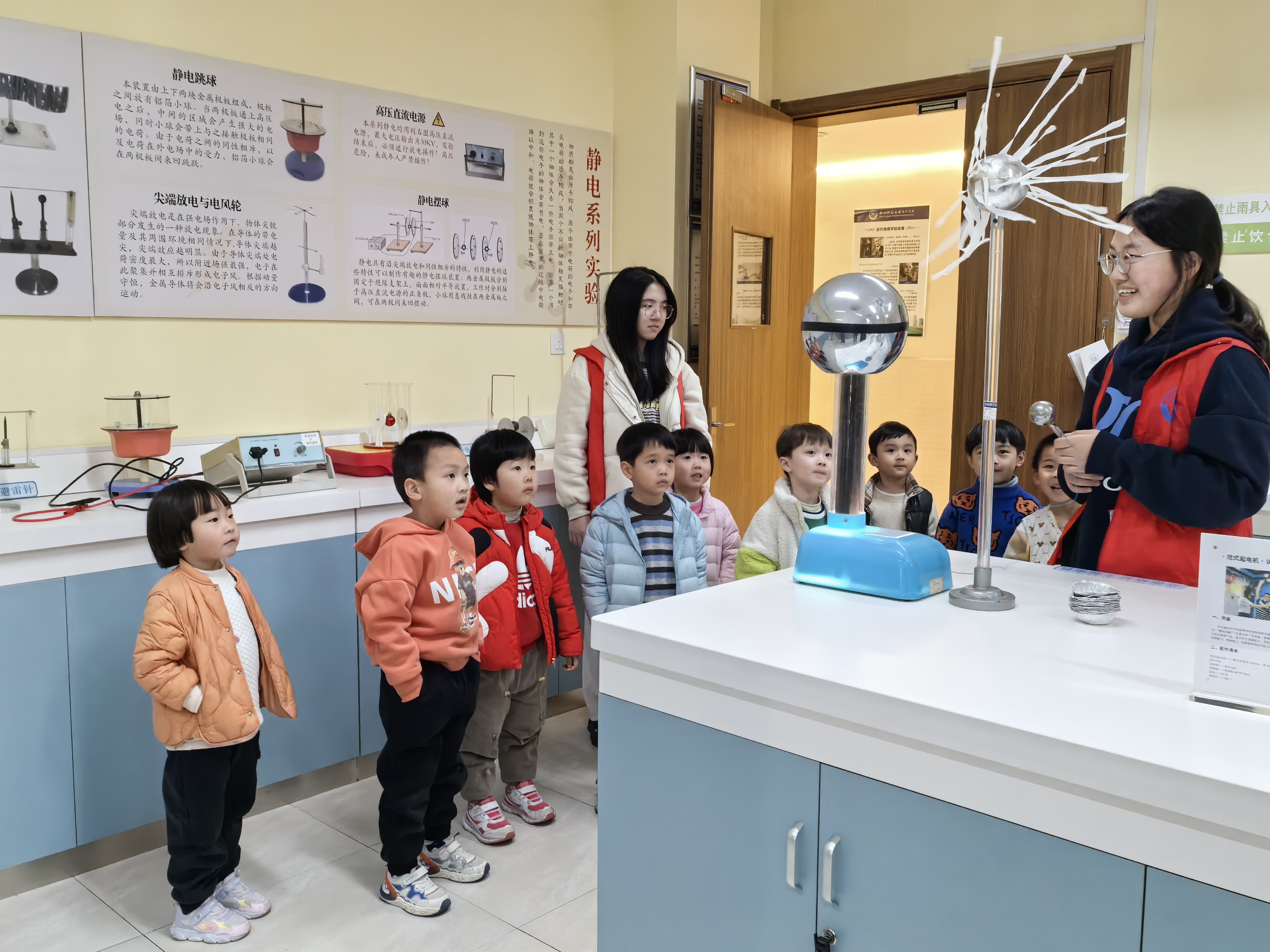 三月杭城,春意正浓。在这充满生机的季节里,一场别开生面的科学启蒙之旅在如意直播 物理演示实验室拉开帷幕。近日,学院接待了杭师大幼儿园的集体参观活动,党员教师和学院科普志愿者带领孩子们沉浸式体验科学魅力,激发幼儿科学探索兴趣,培养观察与思考能力。此次活动孩子们参观了涵盖力学、热学、声学、光学和电学五大主题的三个演示实验室。长达一小时的互动体验与趣味演示,为小朋友们揭开了物理世界的神秘面纱。